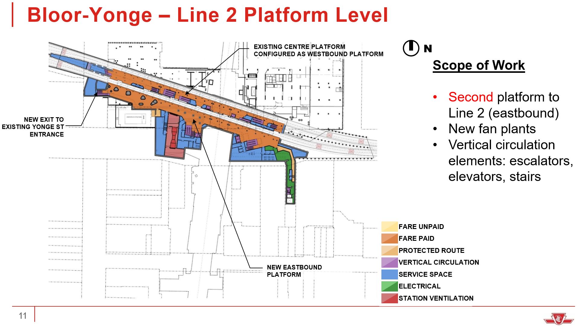 Although Automatic Train Control will allow for more frequent service, this also means that passengers can be delivered to the station at a faster rate than today. If stairs, escalators and platforms cannot handle the added demand, the station will be a pinch point on the network. At a political level, the City of Toronto Council is already on record as requiring this expansion (as well as the Relief, now Ontario Line) as pre-requisites for the Line 1 Yonge extension to Richmond Hill.
