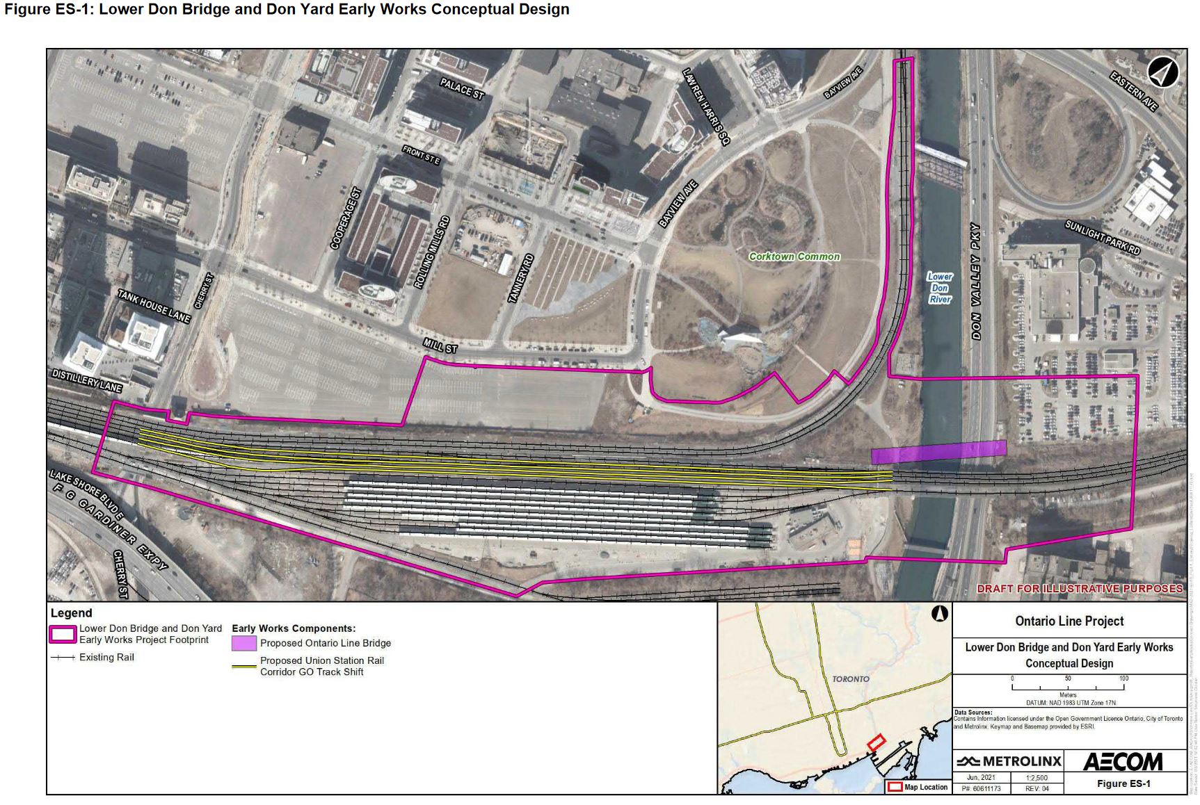 Having learned their lesson on Eglinton that a single gigantic project brings management challenges, Metrolinx broke up the Ontario Line into four sub-projects. The first of these are the “Early Works” which are all relatively small undertakings in five locations to set the stage for tunnelling, and to resolve physical conflicts with GO Transit before OL construction begins.