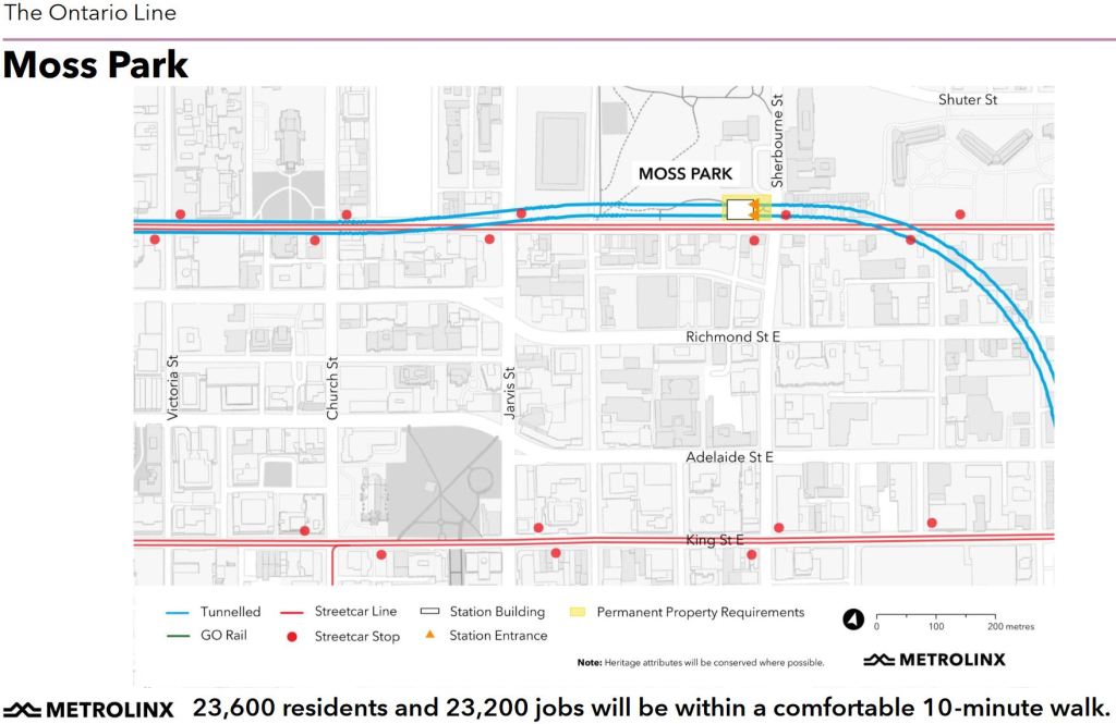 From some of the questions that came in, I know that I didn’t address the technology. In theory, we don’t know yet which technology will be used, but Metrolinx has been showing photos of Vancouver’s Skytrain as examples of what the Ontario Line will look like. Until the RSSOM contract is awarded, we will not know which vehicle provider and signal system will be used on the line.