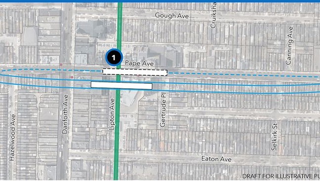 Because of the project’s size, the development work was divided between the City and the Province through Metrolinx. The City did the south portion from Pape to Downtown, while Metrolinx took on the north segment.