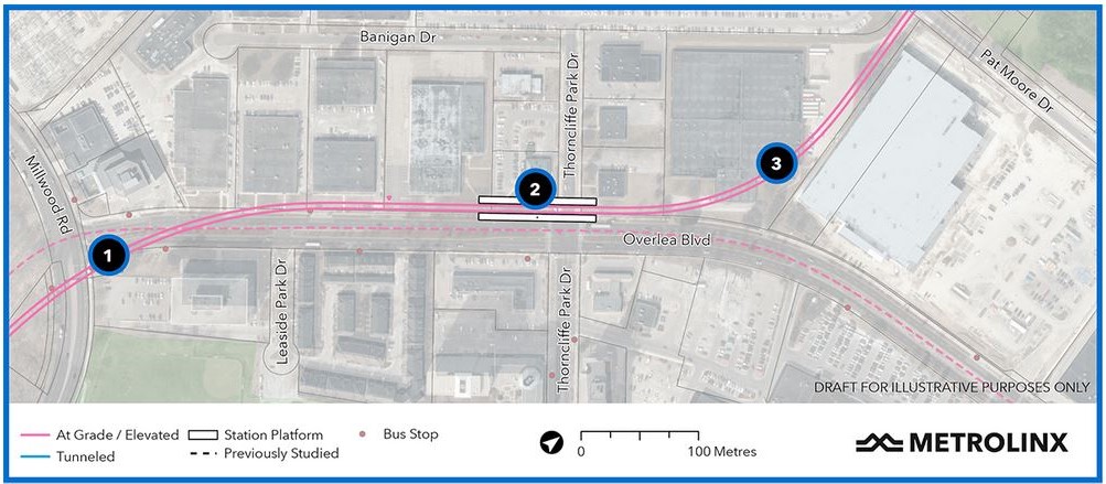 Updated February 2, 2022 at 6:30am: The section on Science Centre Station at Don Mills and Eglinton has been updated with an illustration of the CreateTO proposal for the southwest and southeast corners.