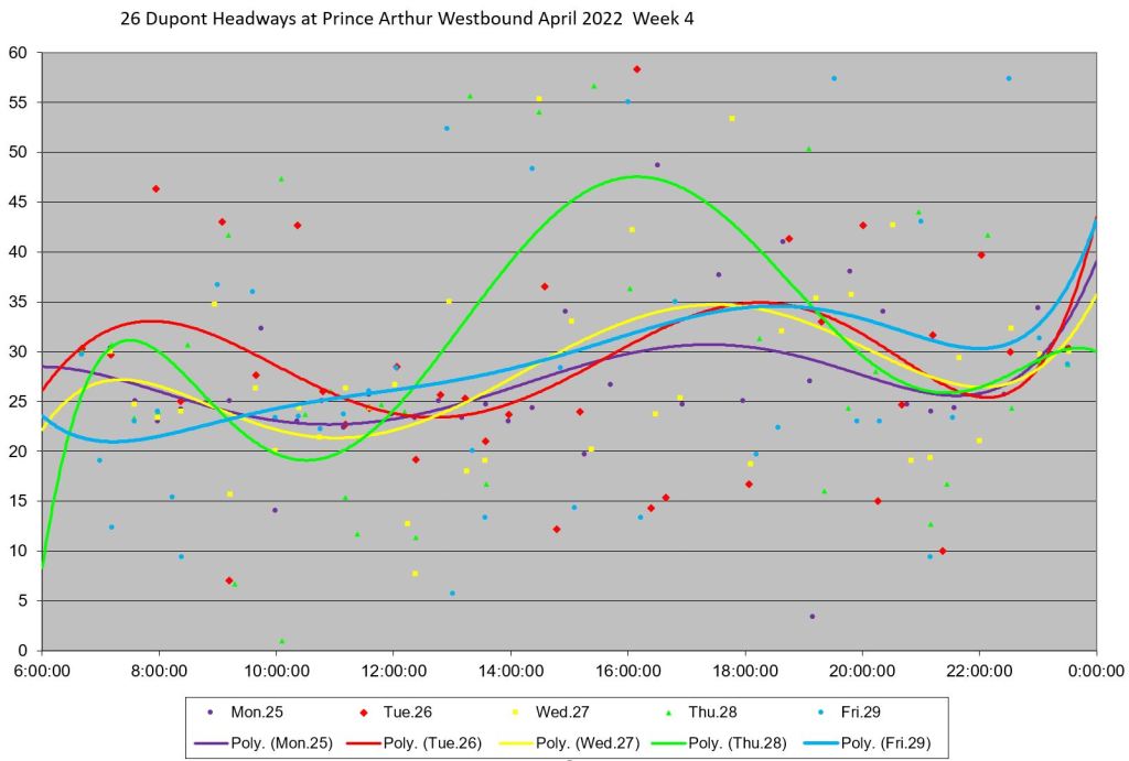 Headways at Prince Arthur Westbound
