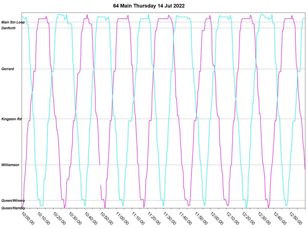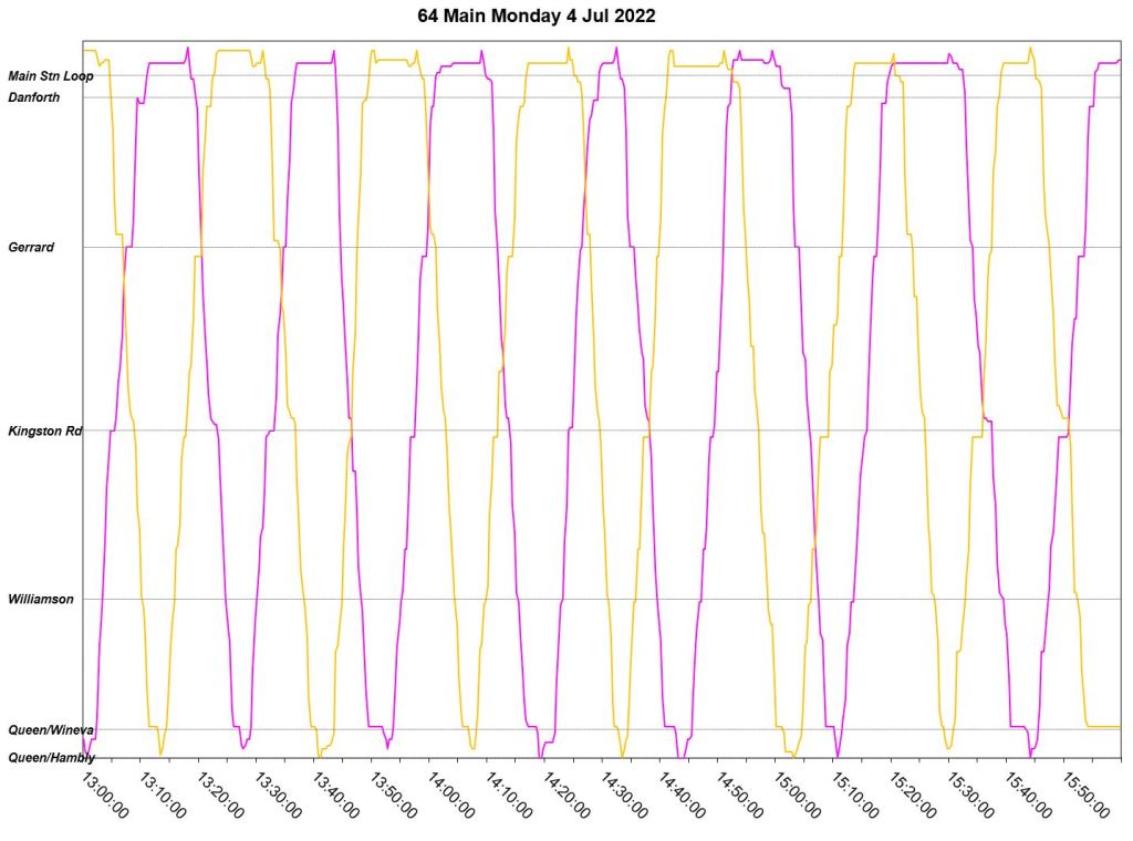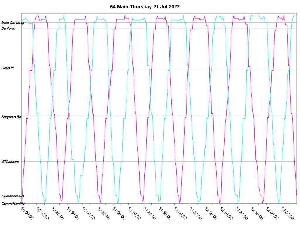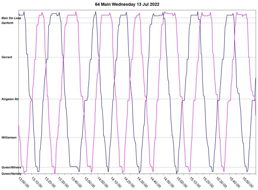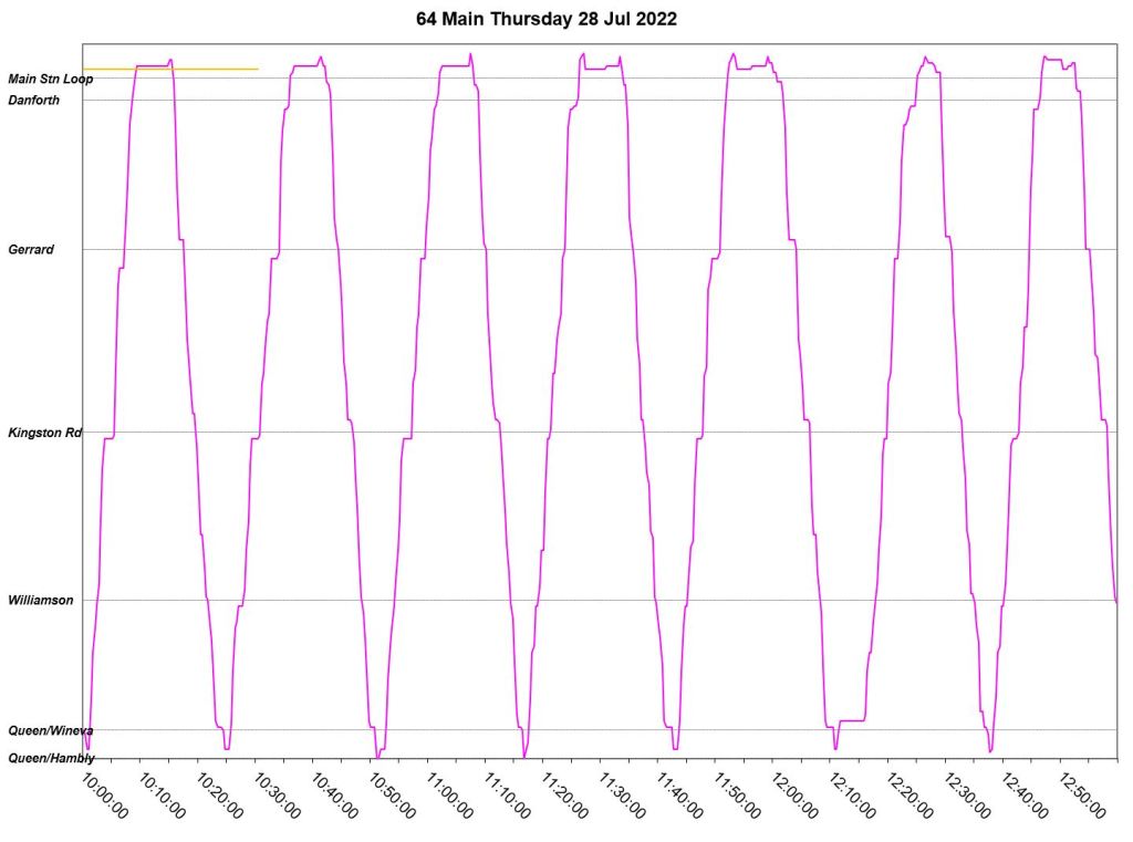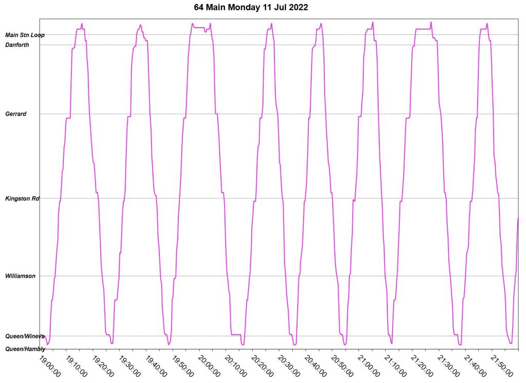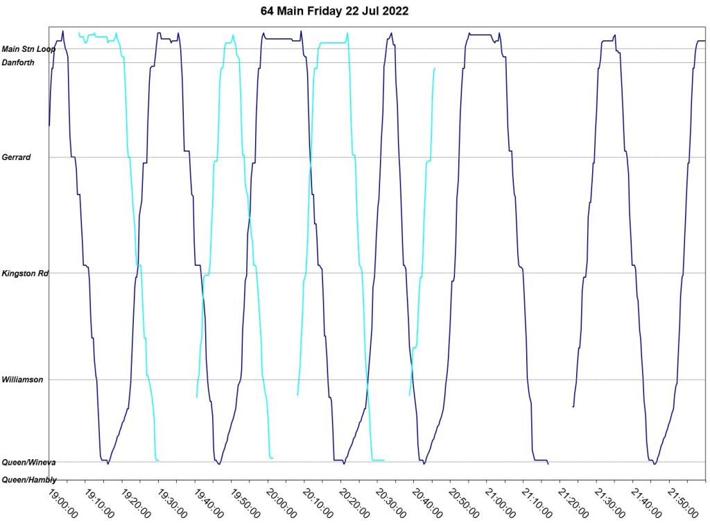 This article is a follow-up to Service Quality on 64 Main: Oct-Dec 2021 to see how this route is behaving under summer conditions.