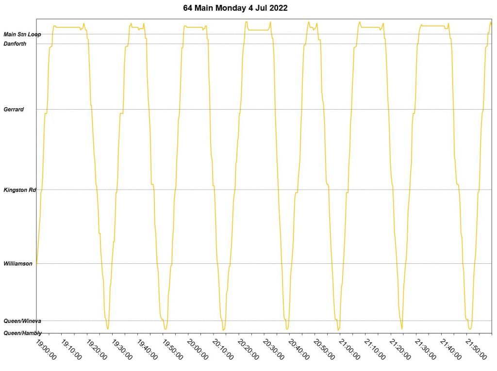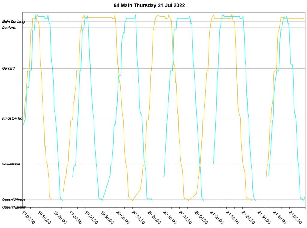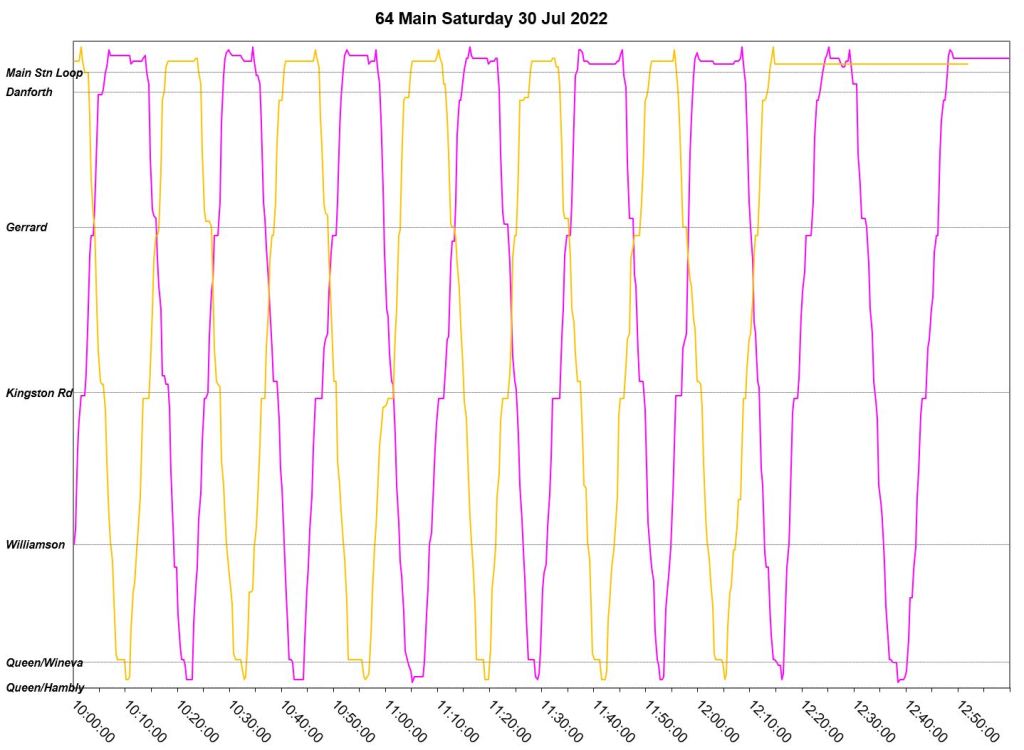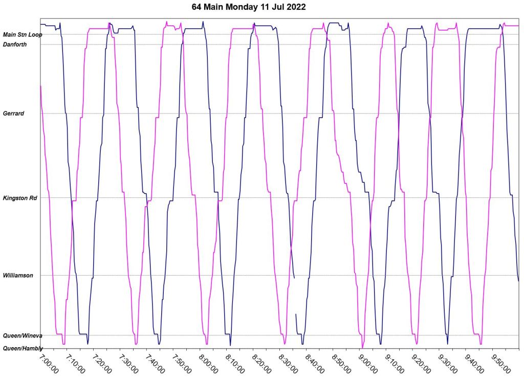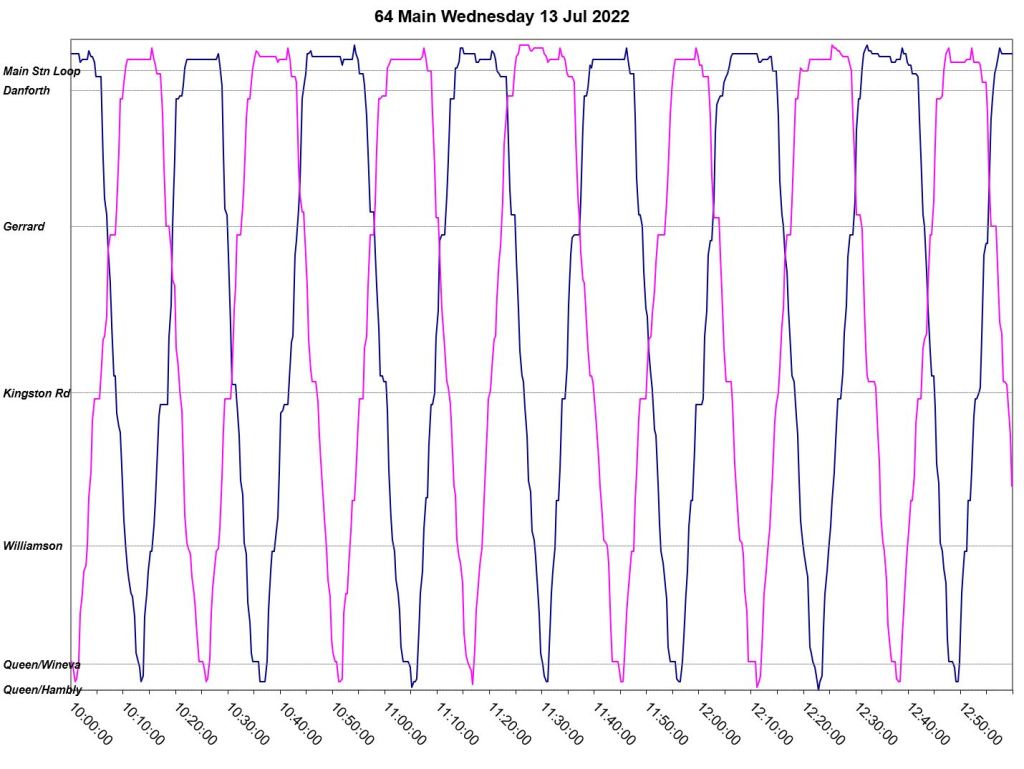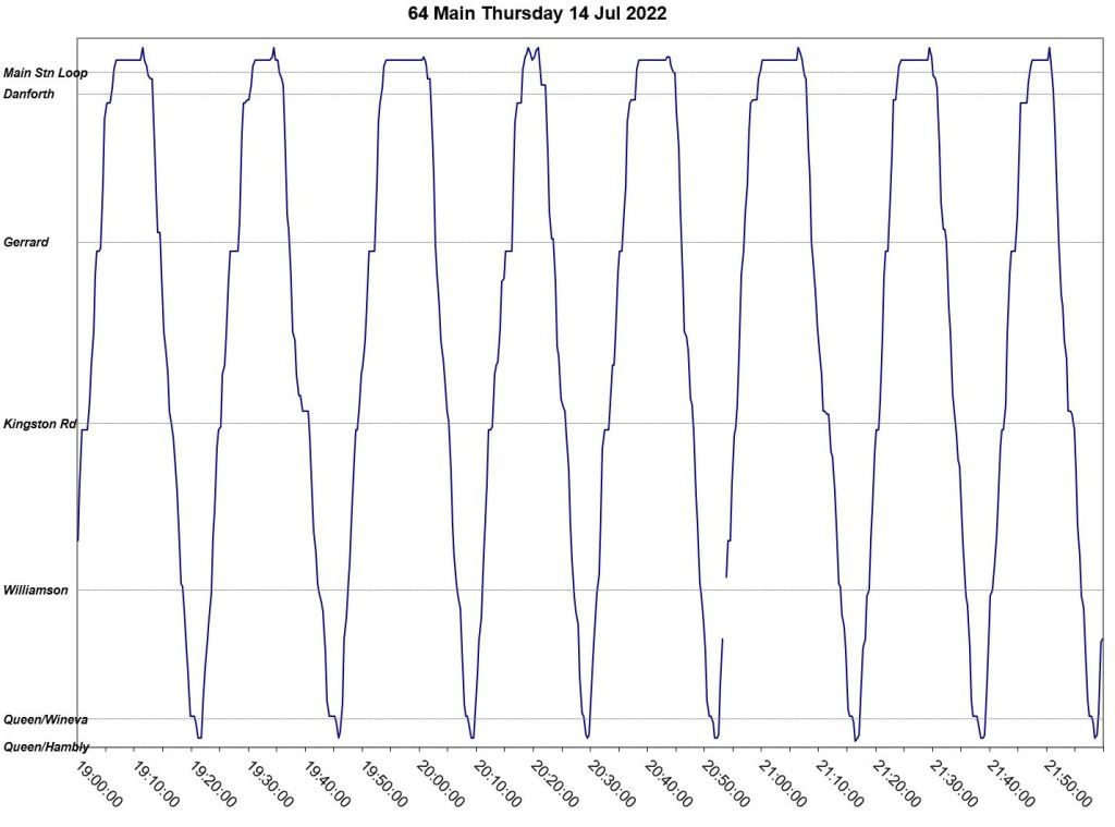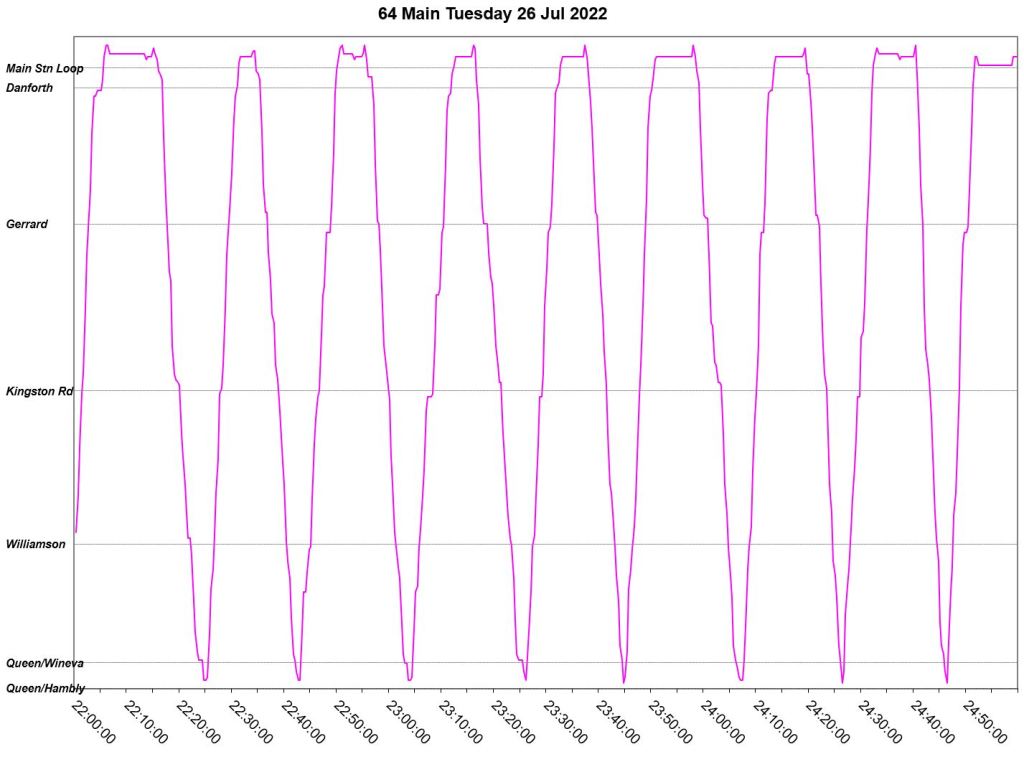 This article is a follow-up to Service Quality on 64 Main: Oct-Dec 2021 to see how this route is behaving under summer conditions.