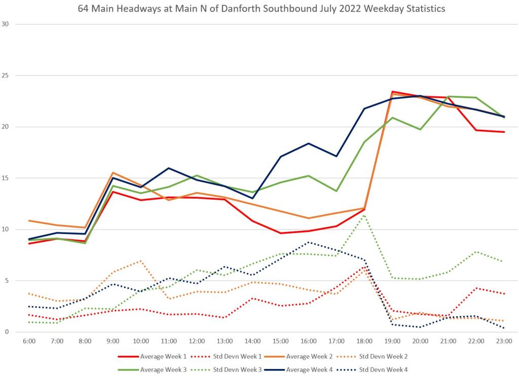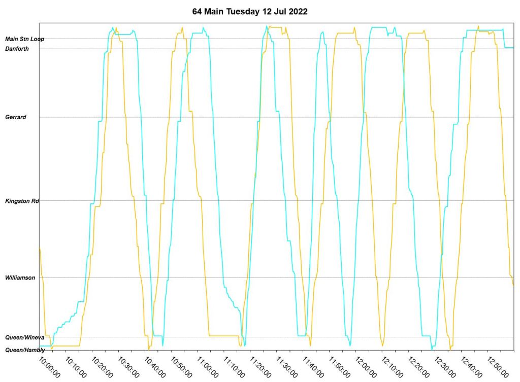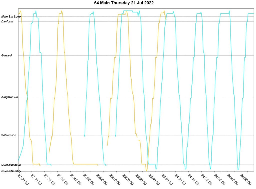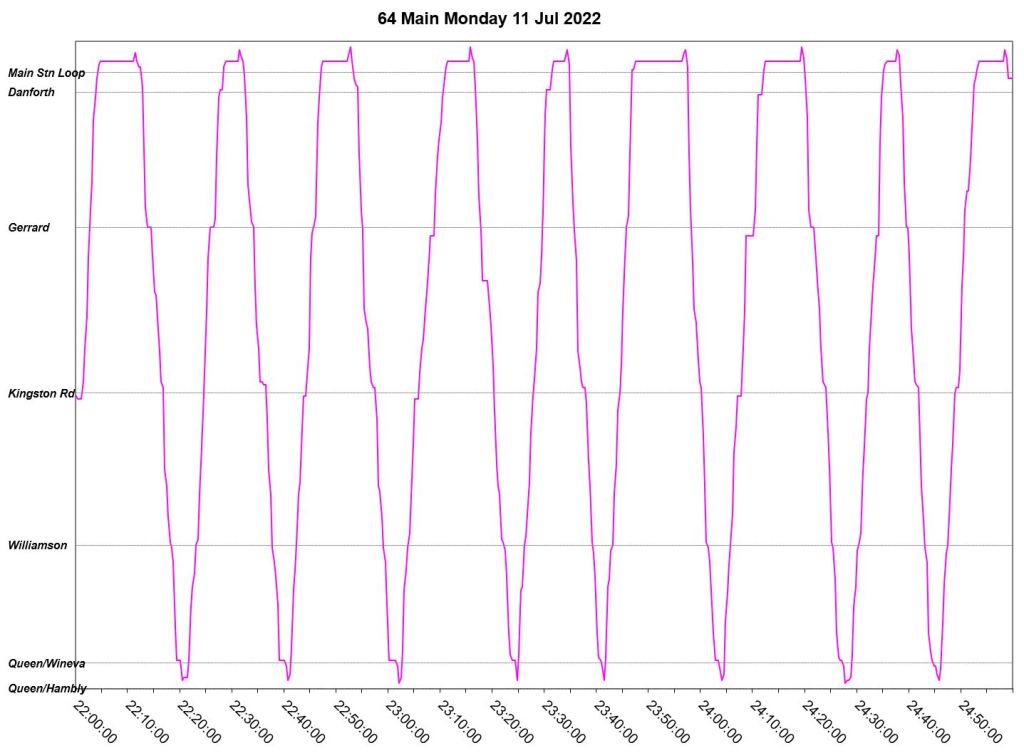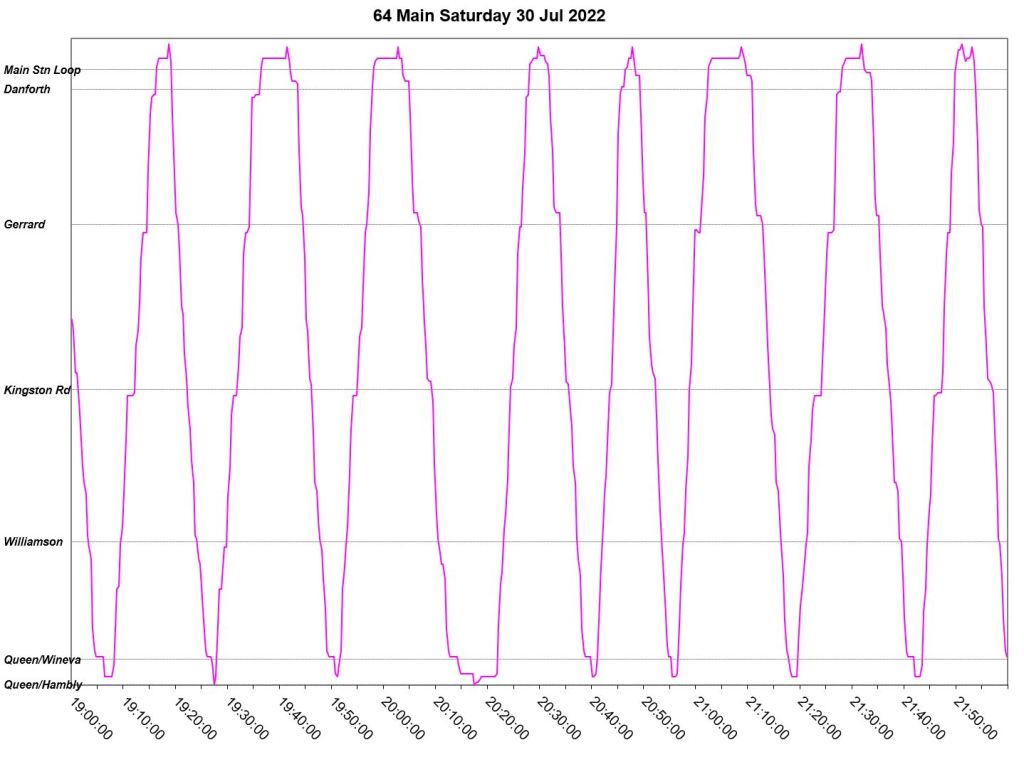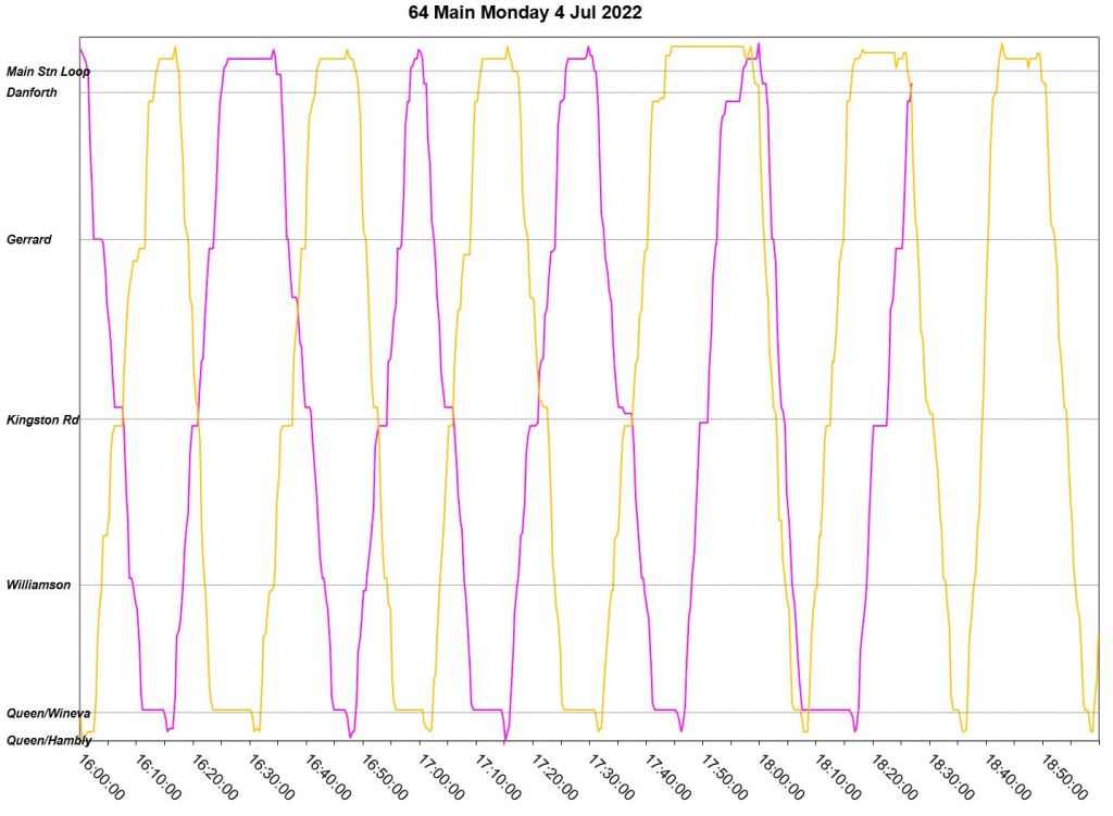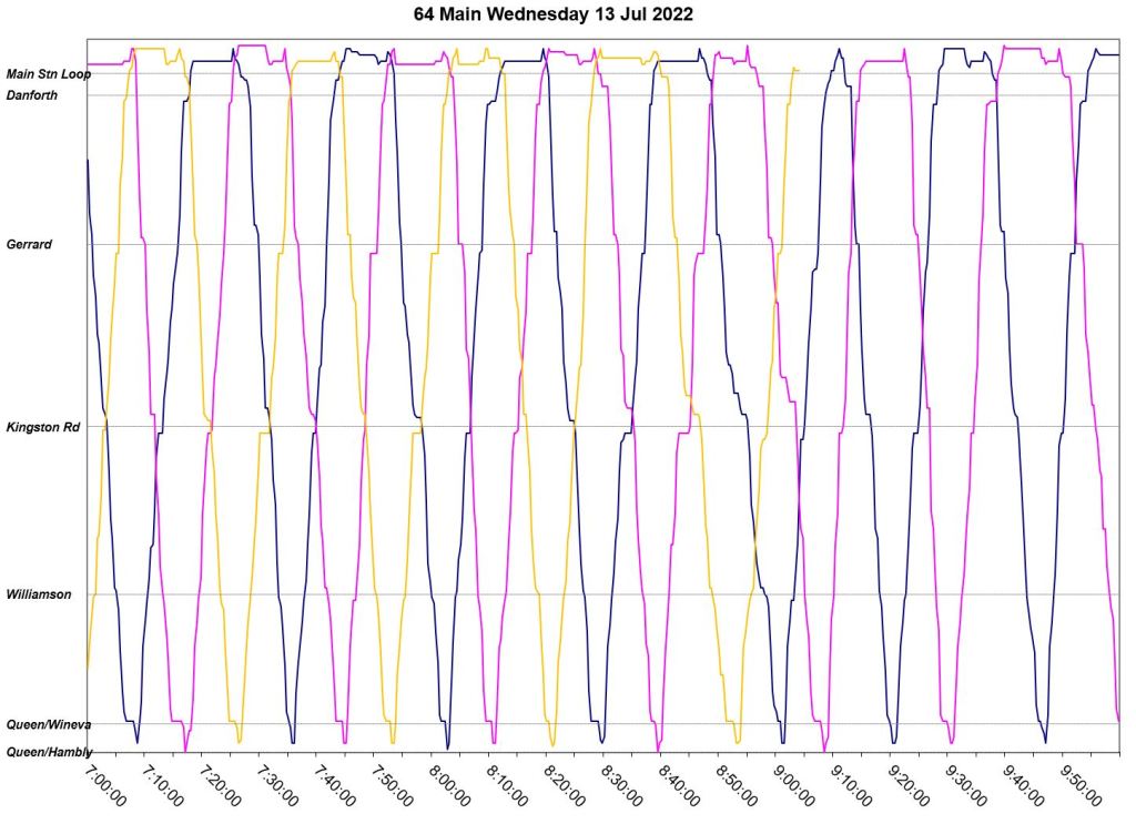 This article is a follow-up to Service Quality on 64 Main: Oct-Dec 2021 to see how this route is behaving under summer conditions.