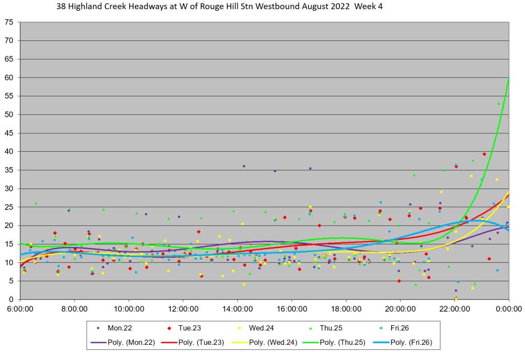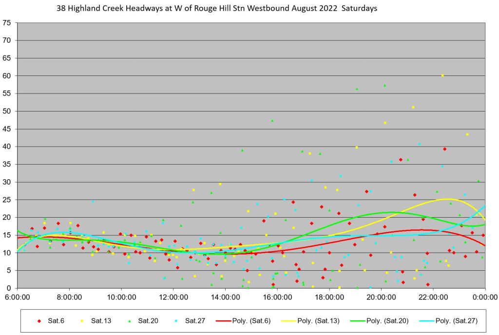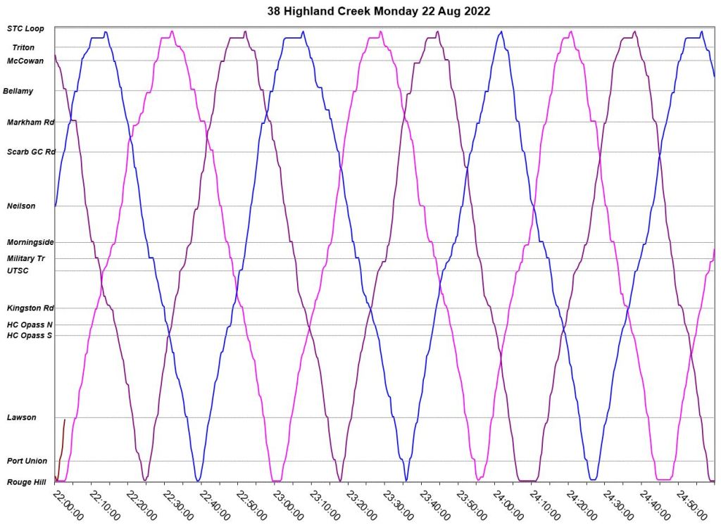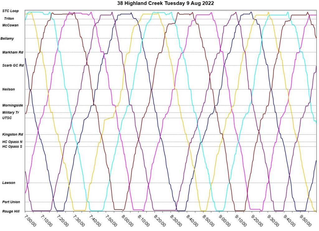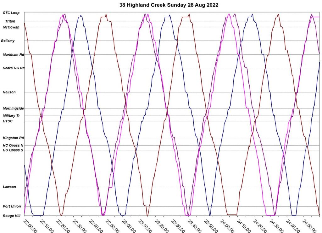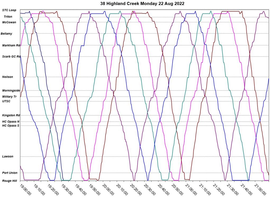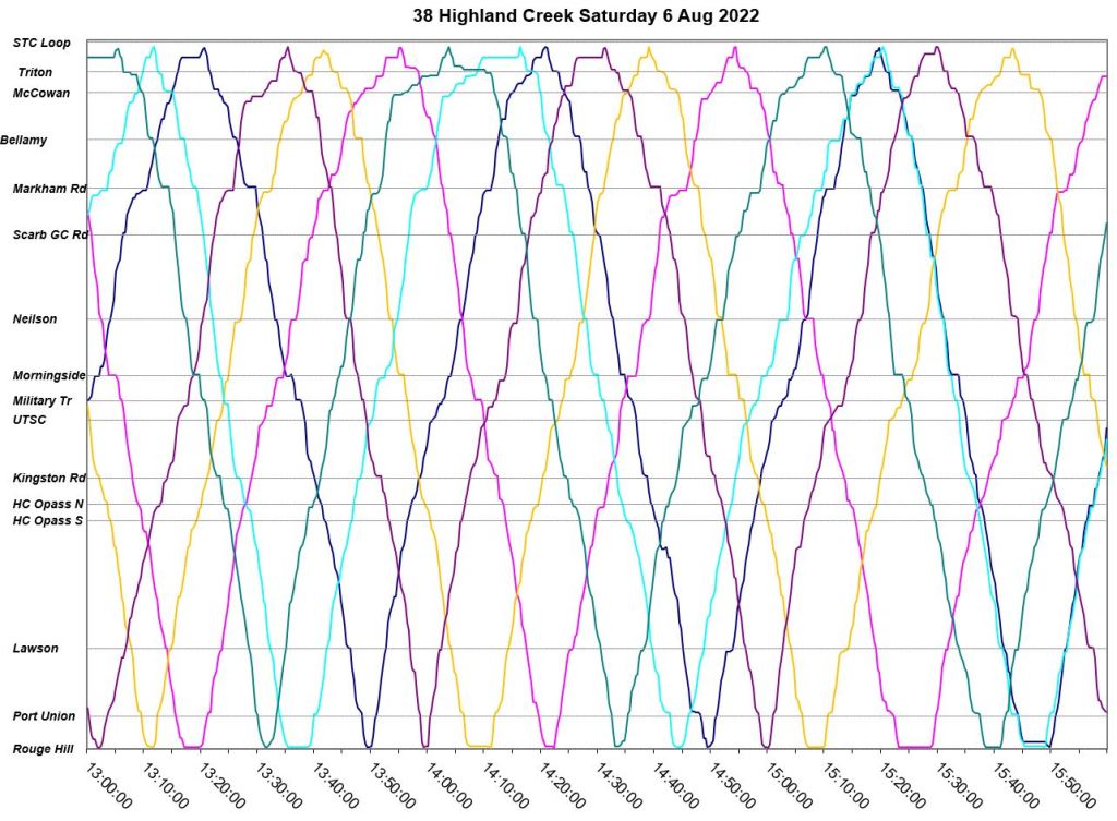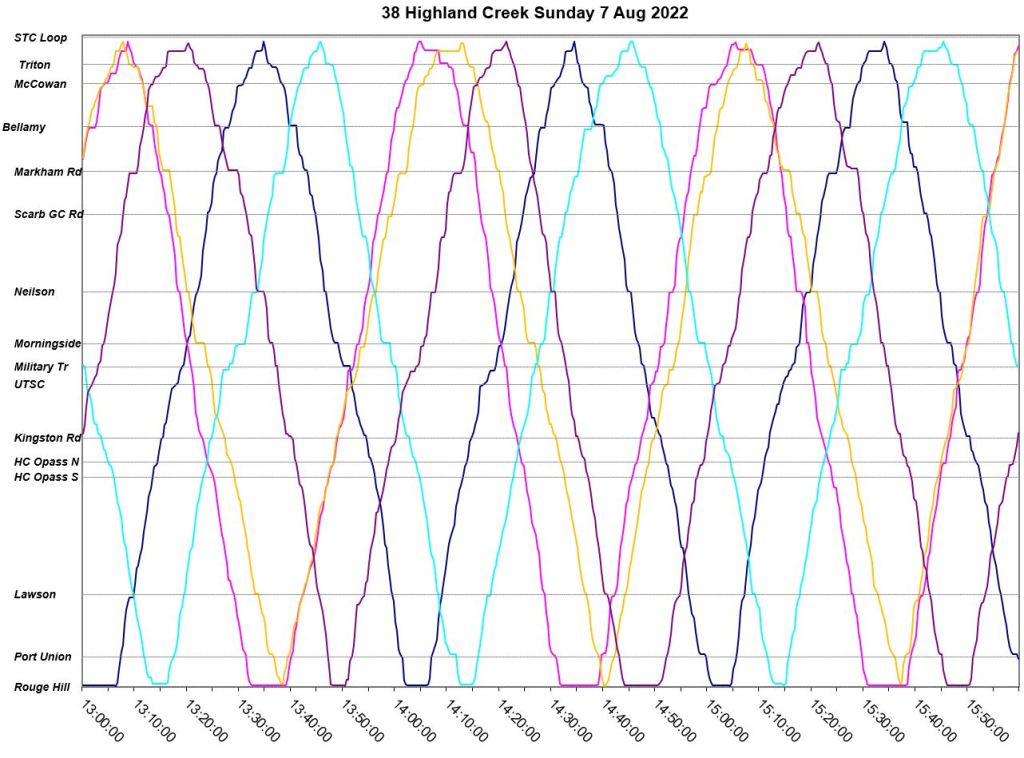 This article reviews 38 Highland Creek for the month of August 2022. The short version is that on weekdays, the route is somewhat unreliable and suffers at time from missing buses, but on weekends, the problems are worse than anything I have seen in my travels through operating stats.