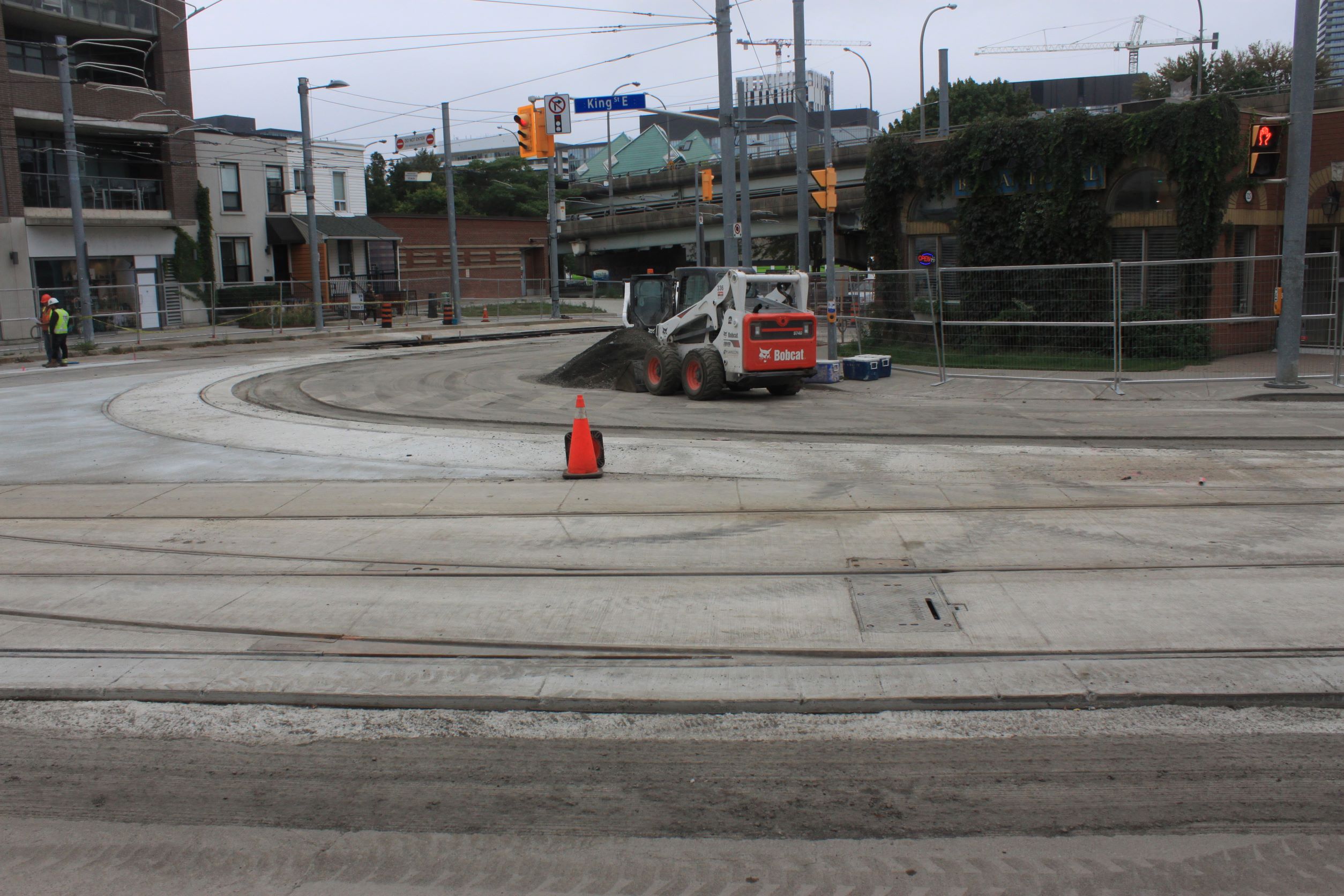 Work continues at King and Sumach. The TTC’s target date for resumption of service here, including the 504A branch to Distillery Loop, is “late September” according to TTC Media Relations. I will update this article with photos when I get a chance to visit the site. My previous review was on September 2.