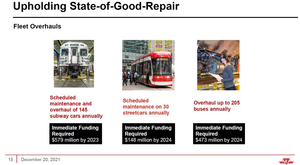 The TTC’s capital plans have reverted to purchase of a new fleet. Other short-term changes include: