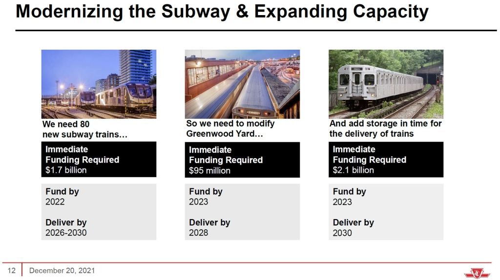 This plan requires a lot of funding that the TTC still does not have, action to launch procurement of long lead time rolling stock and infrastructure, and a level of project co-ordination for which the TTC is not particularly noted.