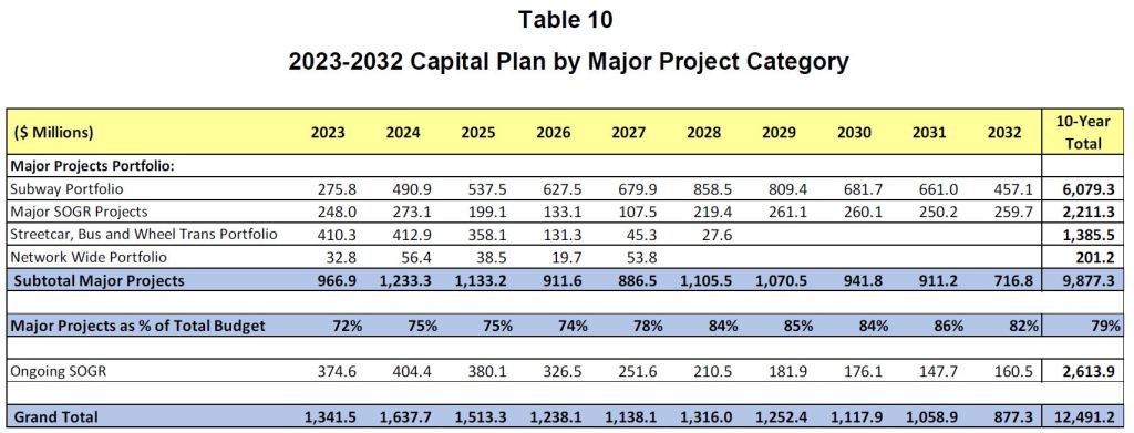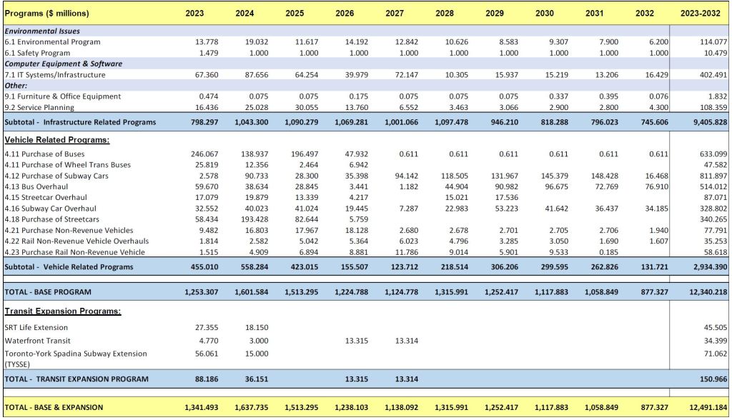 Unlike the 15-year plan, the 10-year budget is based on funding the TTC has some expectation of receiving although the cheque is not exactly “in the mail” for some of this.
