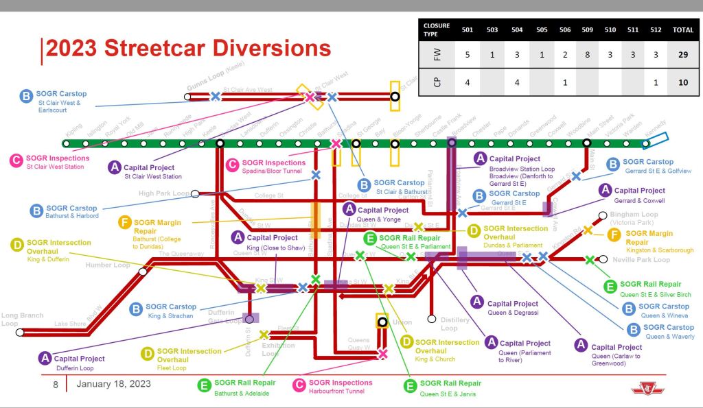 See: Subway Closure and Streetcar Diversions – 2022 Review and 2023/2024 Forecast