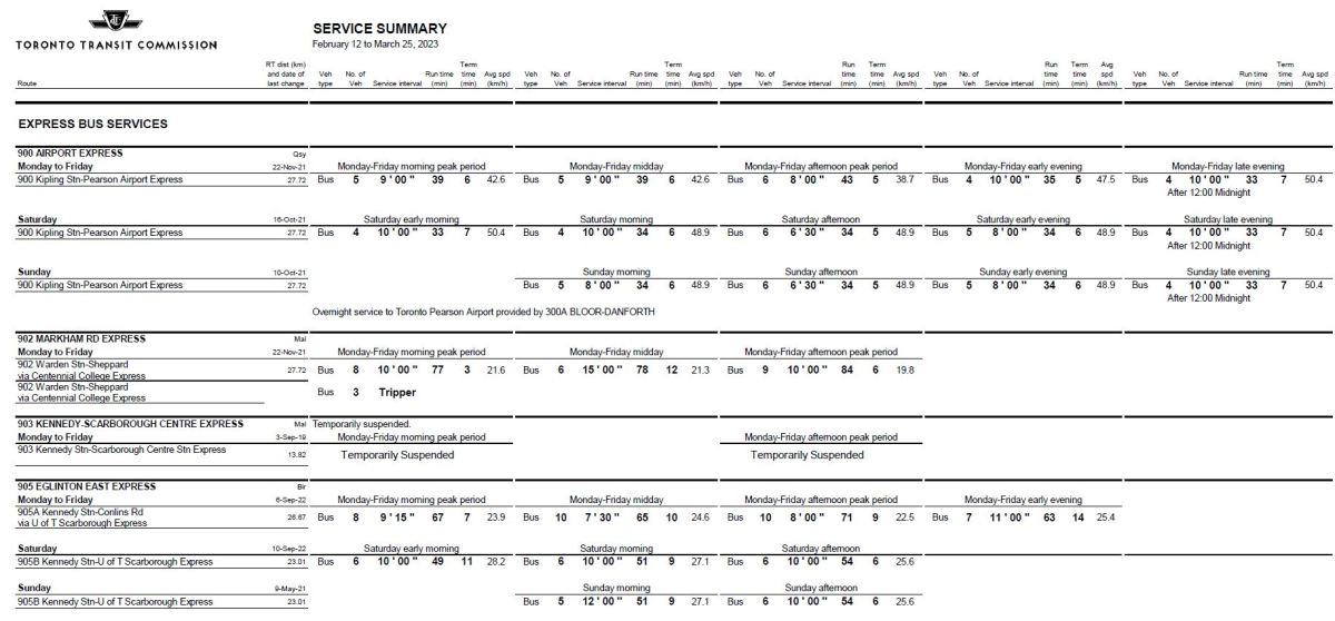 905_20230212_servicesummary Published May 7, 2023 at 1832 × 853 in 905 Eglinton East Express March-April 2023 ← Previous Next →