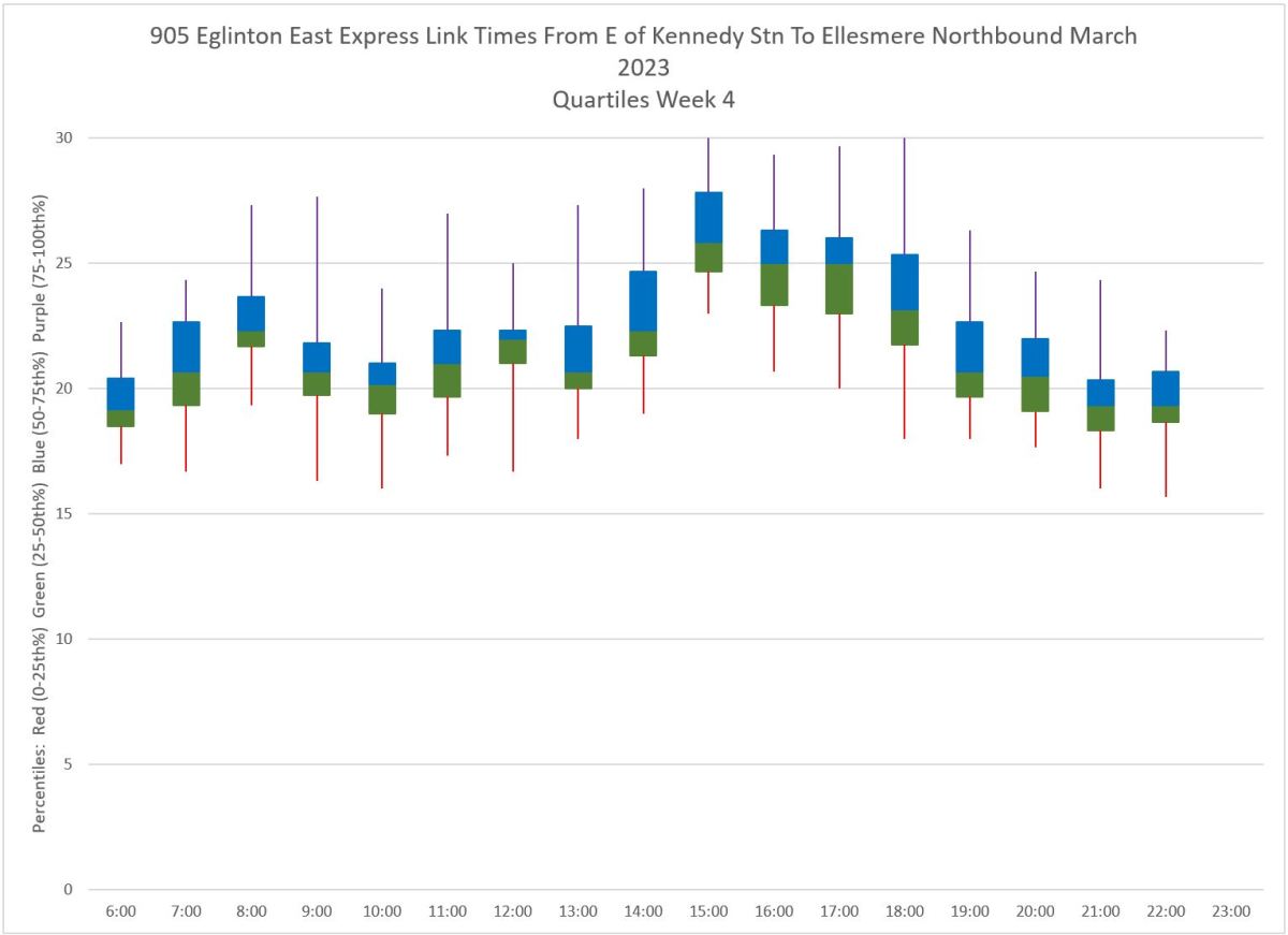 905_202303_kennedystn_ellesmere_traveltime_week4q Published May 7, 2023 at 1531 × 1112 in 905 Eglinton East Express March-April 2023 ← Previous Next →