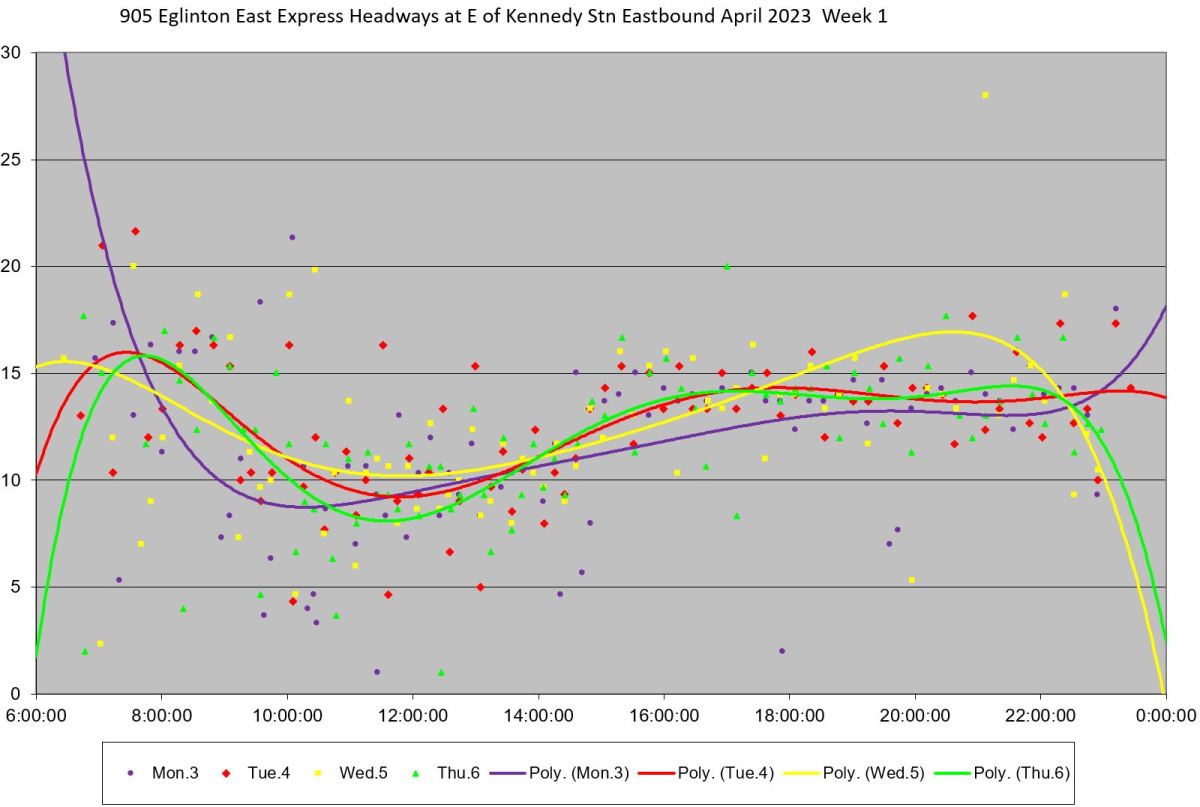 905_202304_eofkennedystn_eb_headways_week1 Published May 7, 2023 at 1600 × 1077 in 905 Eglinton East Express March-April 2023 ← Previous Next →