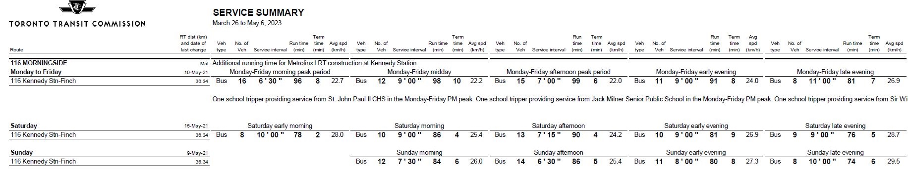 The 116 Morningside bus has operated with the same schedule throughout the January-April period.