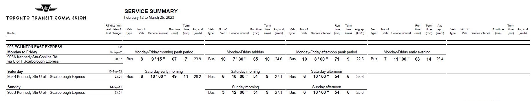 - In late March, weekday service was reduced and travel times were extended during the peaks and midday. The table below shows an effective date of September 2022 for weekday service in the March summary, but this is not correct.