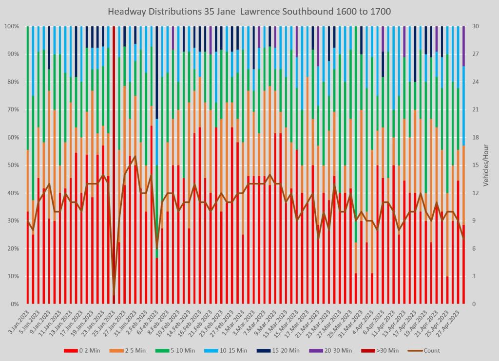 Subject to any fine tuning, these will be the format of charts I will use in a series of route reviews beginning in June with data to the end of May. My intent is to look at routes affected by recent service changes to see how they are behaving with their new schedules.