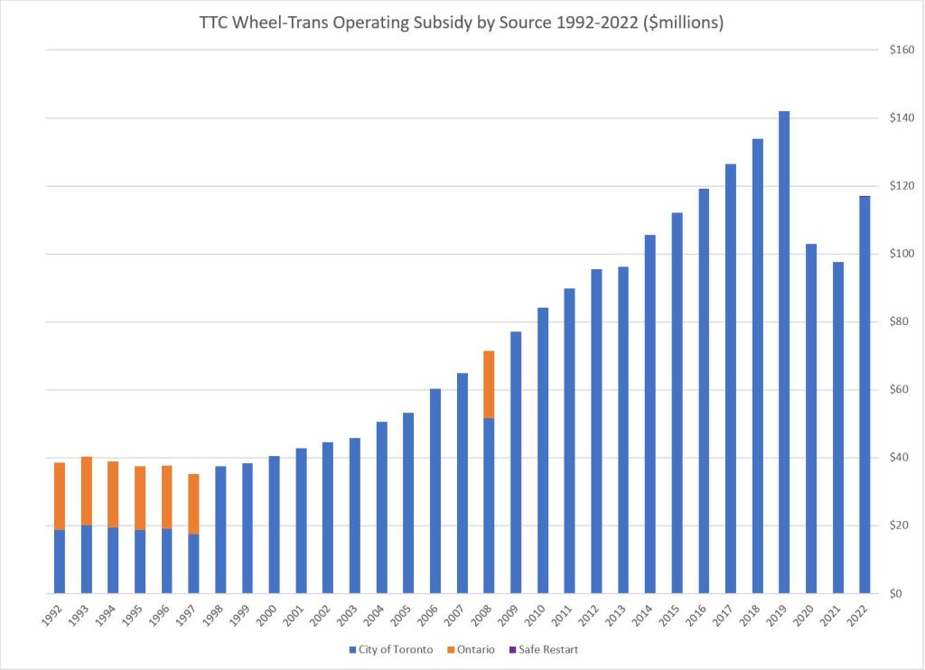 On the right is the Wheel-Trans subsidy which has been almost entirely on the City’s account since 1998 and the Harris cuts.