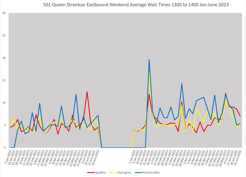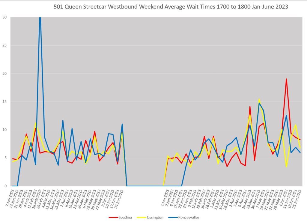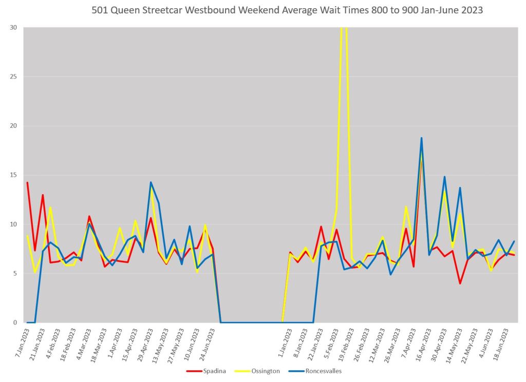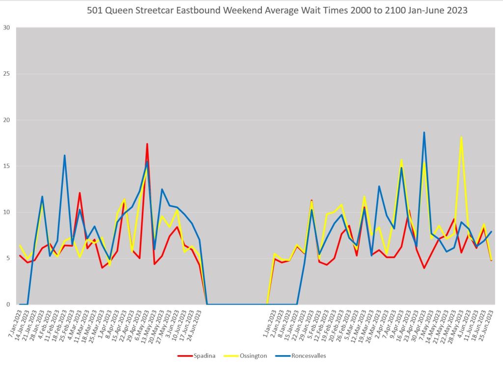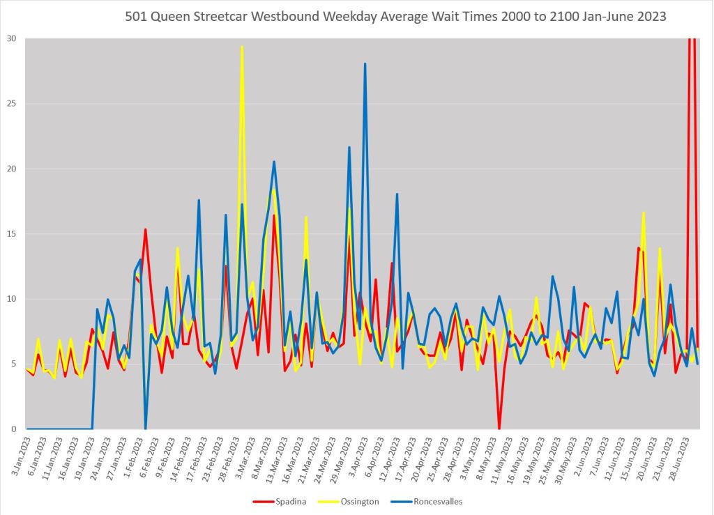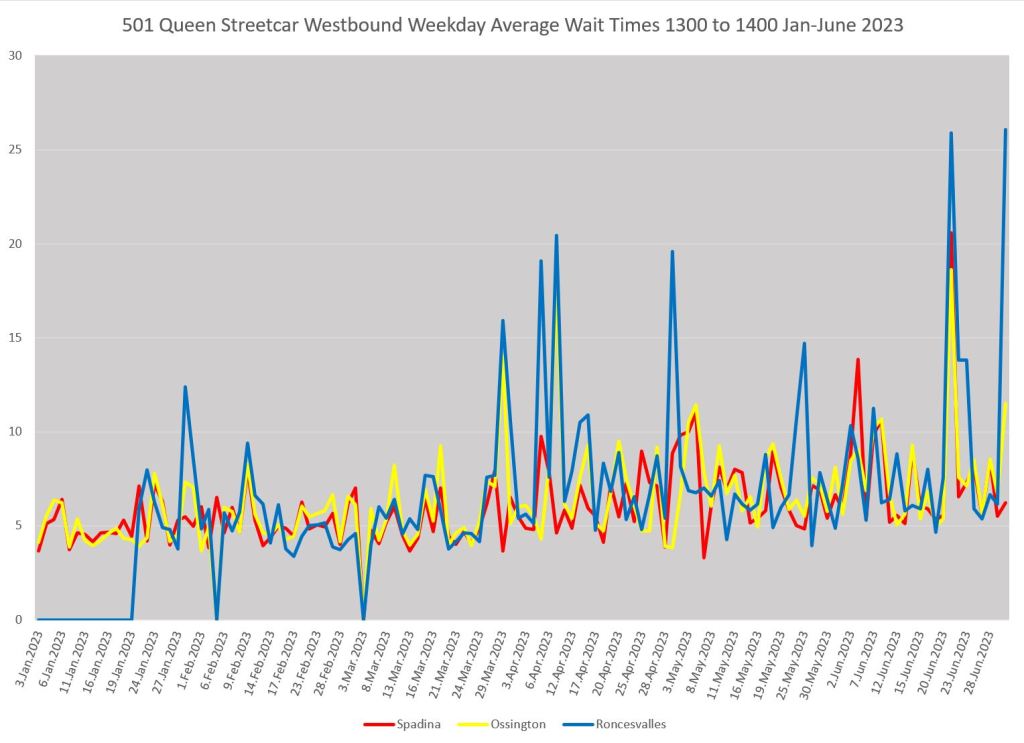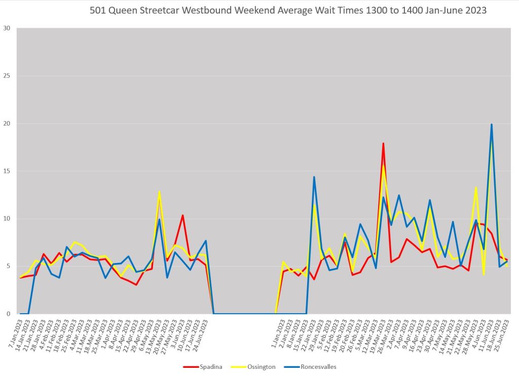 There are, of course, ad hoc situations where accidents, short-term construction or special events produce conditions that are not “standard”. These are normal and have to be managed to the degree possible. One side effect of the overall reduction in service on streetcar lines to a 10 minute level on many routes is that there is no spare capacity when delays occur, and wider headways make the effect on riders of any missing vehicle (either not in service or short-turned) greater.