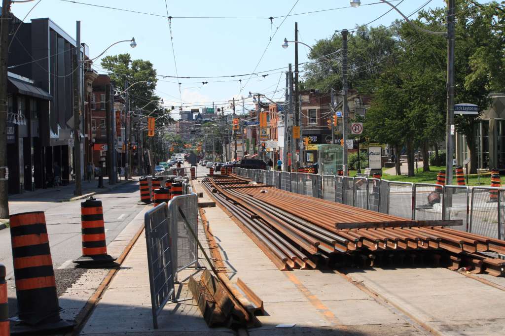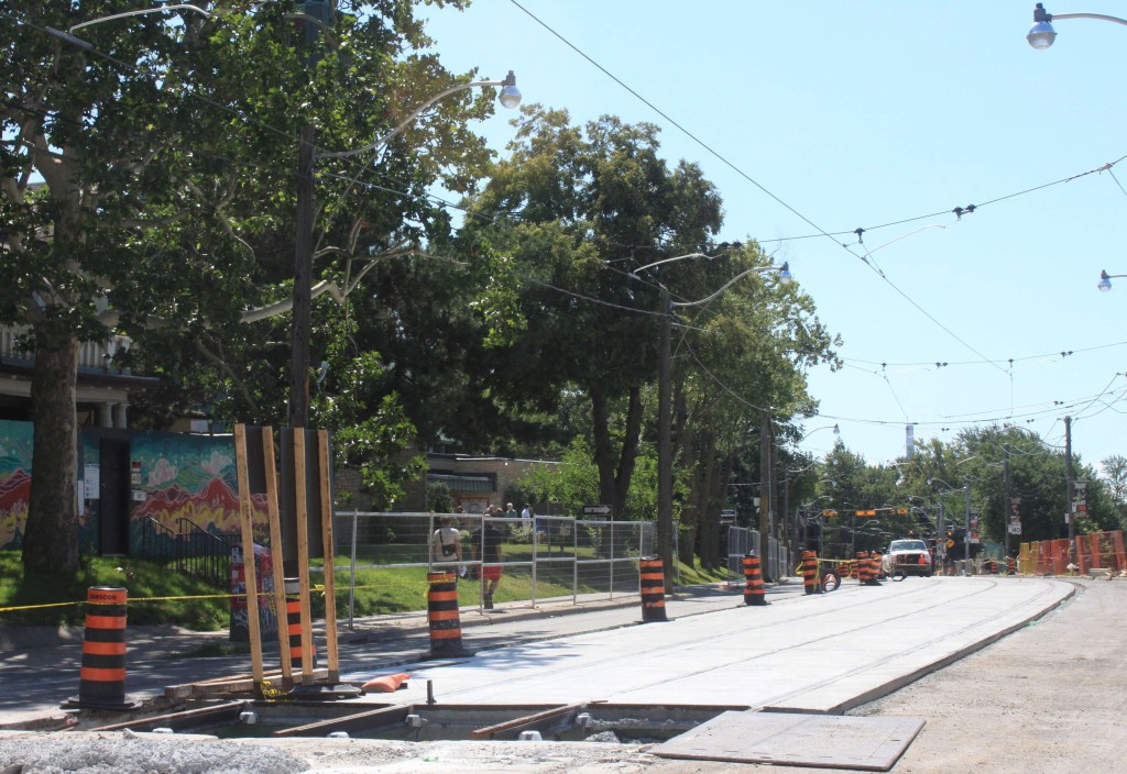 Steve: Actually, the construction is proceeding very quickly, and the contractor, Sanscon, is doing a good job of having multiple sites in different stages concurrently. They have already done some of the sidewalk repairs (earlier than expected, to the consternation of shop owners who got less than a day’s notice). The trackwork will cross Danforth in mid-August, and they have to pause for Taste of the Danforth or otherwise they would just barrel north to Broadview Station. If they continue in the same pattern, they will start paving work on the west curb lane north of Gerrard once the track gang shifts to the north end of the project. Doing it with good planning and overlapping teams is cheaper if it’s well managed.