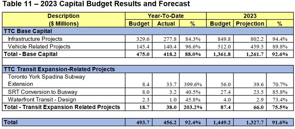 Capital spending at the TTC is presented in three separate formats, depending on the scope of the discussion: