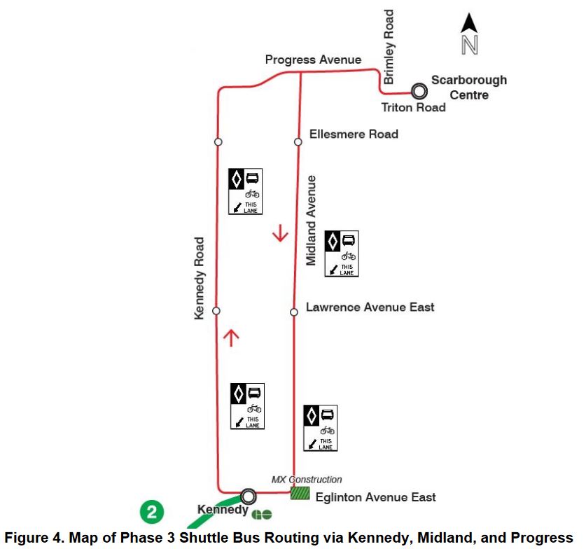 The new 903 Scarborough route, replacing Line 3 SRT, will take various forms over coming months. Routing via Ellesmere awaits completion of a queue jump lane in Brimley at Ellesmere.