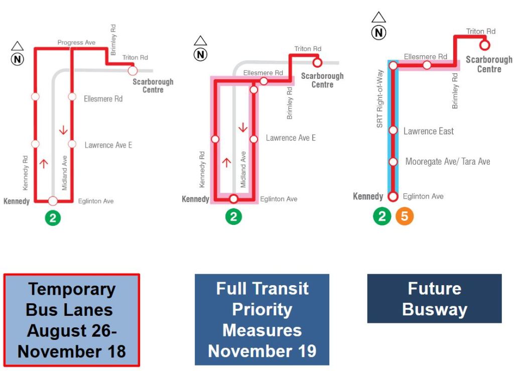 The 903 Express replaced the Scarborough RT between Kennedy and Scarborough Town Centre Stations. In mid-November it was extended east replacing the 934 913 Progress Express to Centennial College.