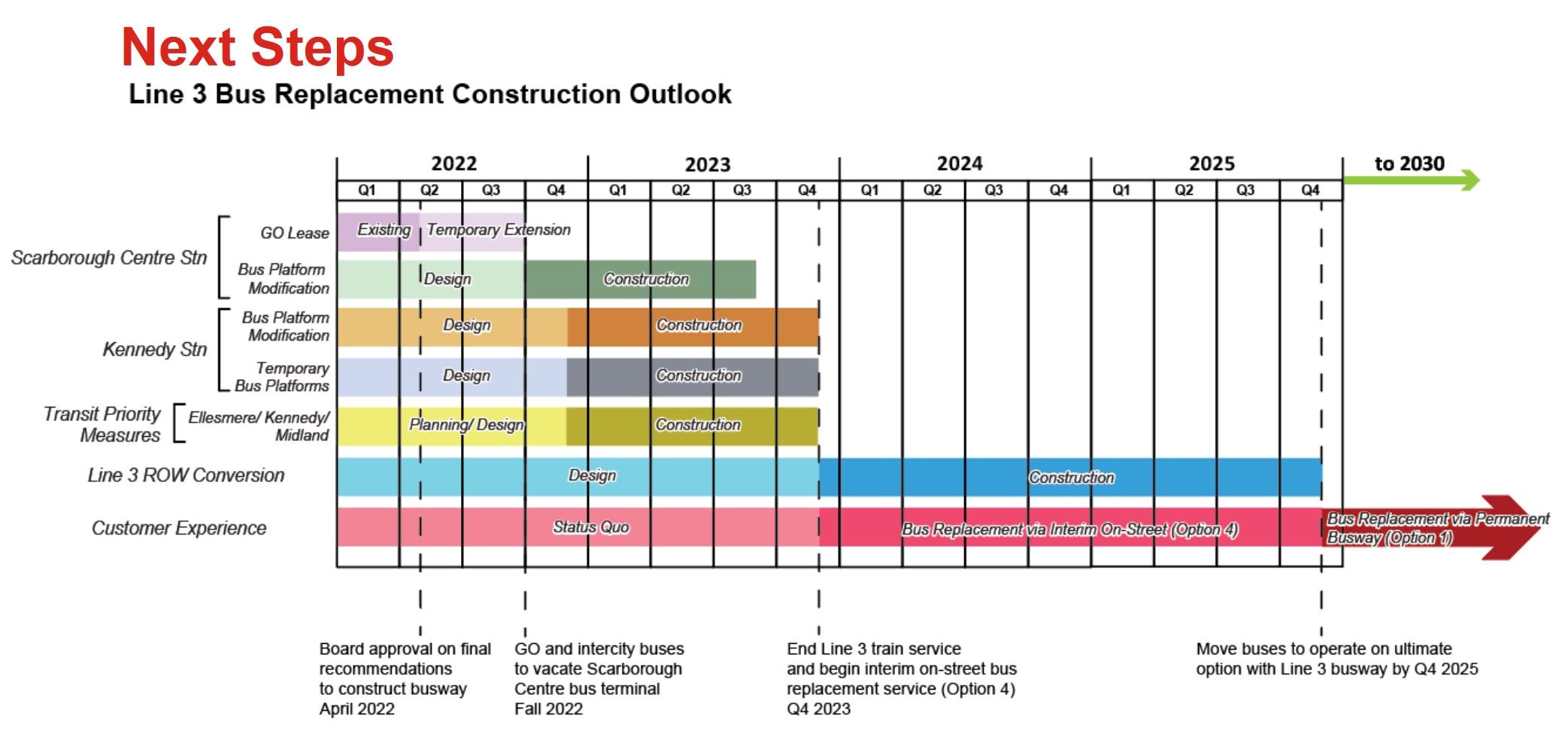 At its meeting of January of January 25, 2024, the TTC Board received an update on the status of a busway in the former SRT corridor.