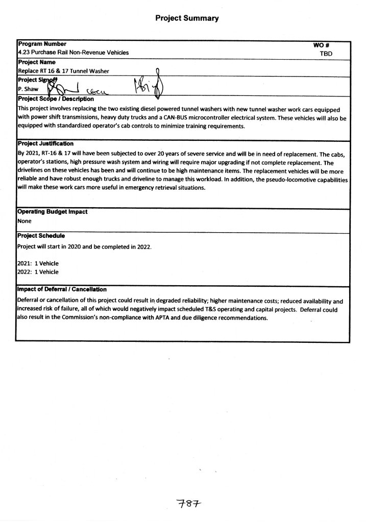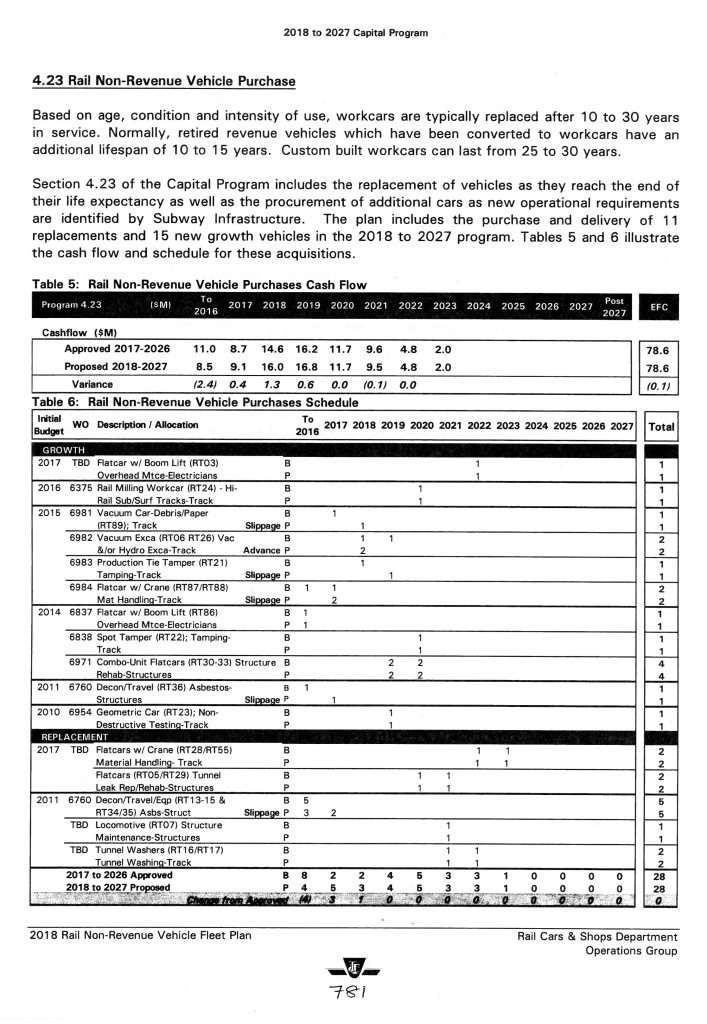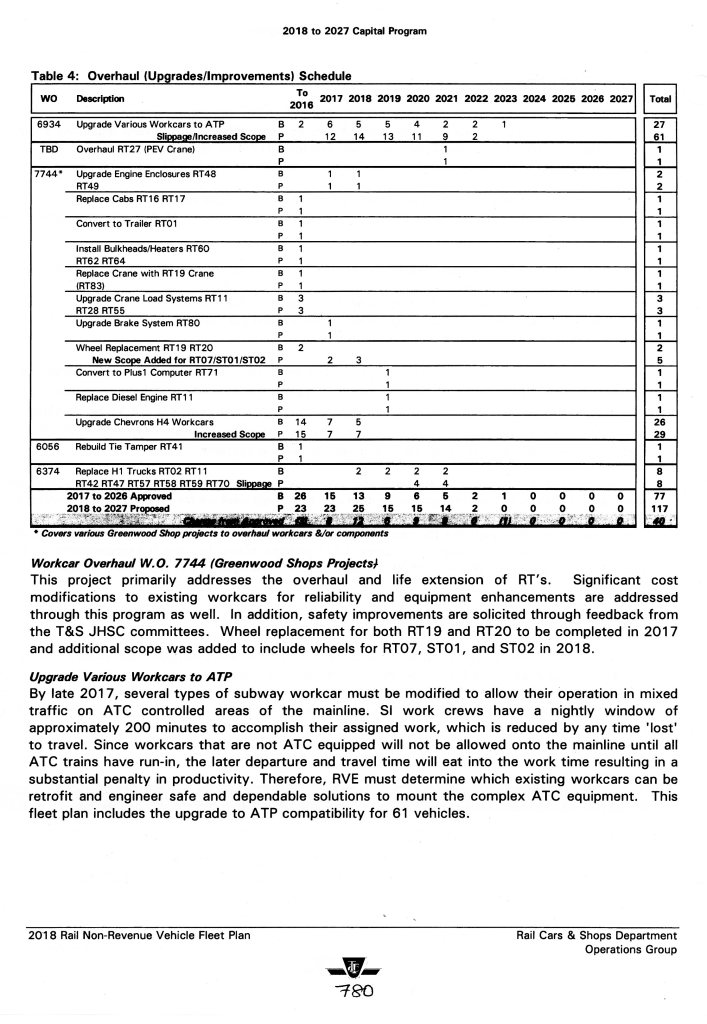 The gallery below contains pages from the 2018 Capital Budget “blue books” which show all details of proposed vehicle construction and purchase projects. I include them here because they explain the purpose and need for the work car fleet thoroughly.