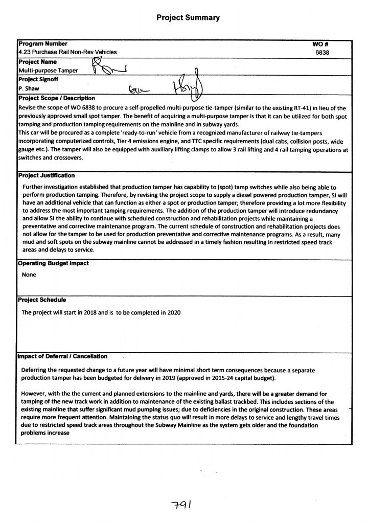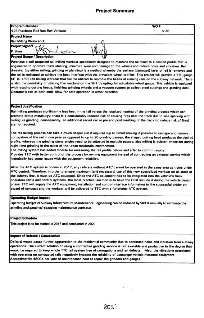 This was the last budget prepared on former CEO Andy Byford’s watch, but this plan was subject to constant deferral under Rick Leary. Most of the new equipment described here was never purchased, and it exists only as a funding reservation in future years.