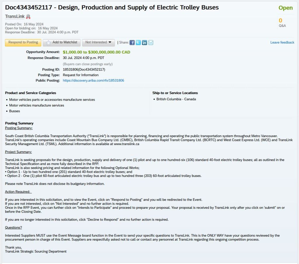 Meanwhile, Vancouver is contemplating very large trolleybus fleet and has just issued a proposal call for 500+ vehicles.