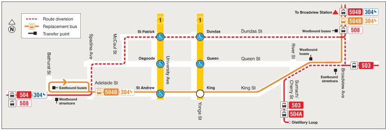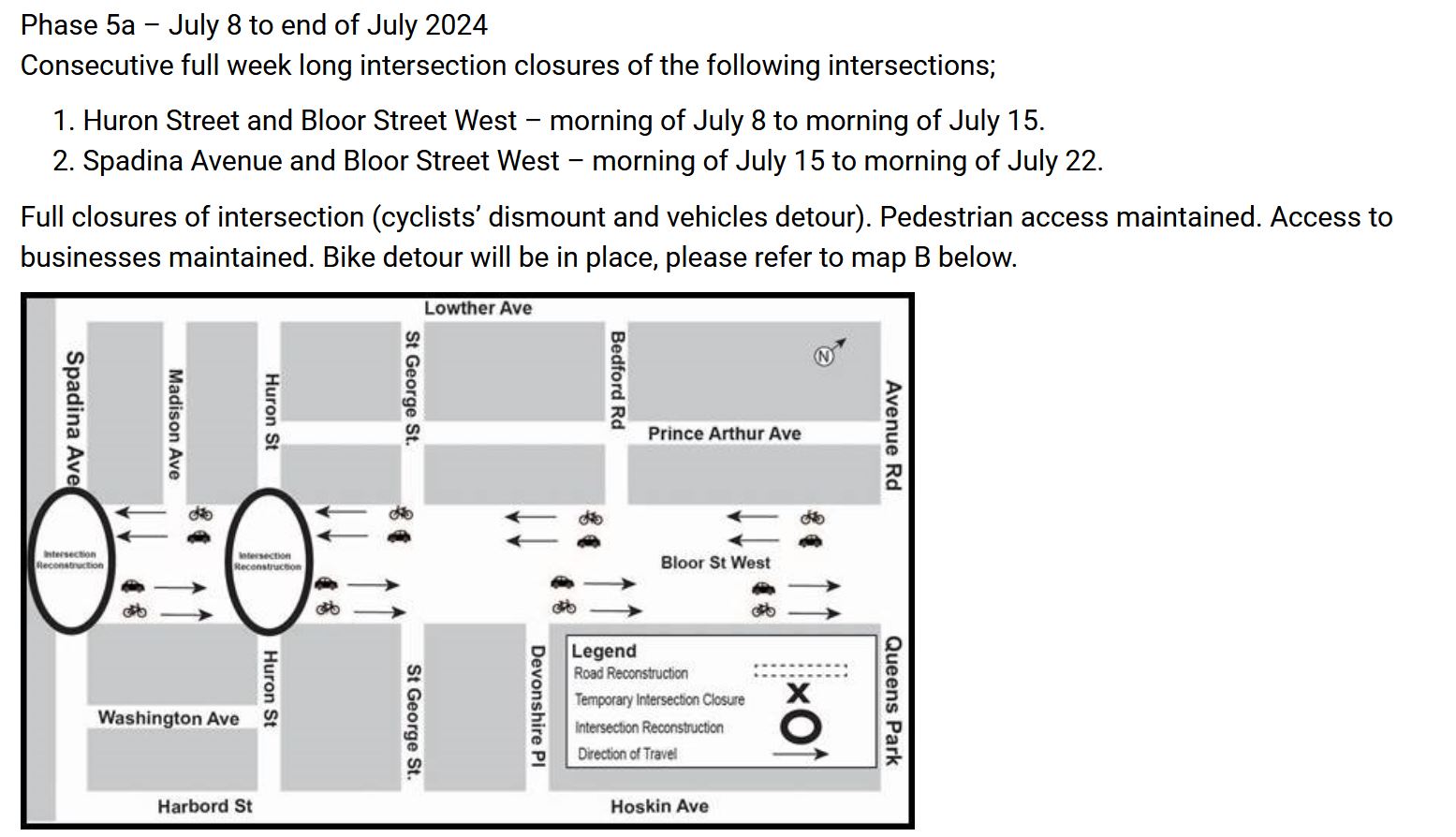 Consultation for the TTC’s 2025 Service Plan is about to get underway, and one topic planned for this is “construction”. Indeed, “doing diversions differently” is one goal of the current plan. On Spadina, that looks like an “own goal”.