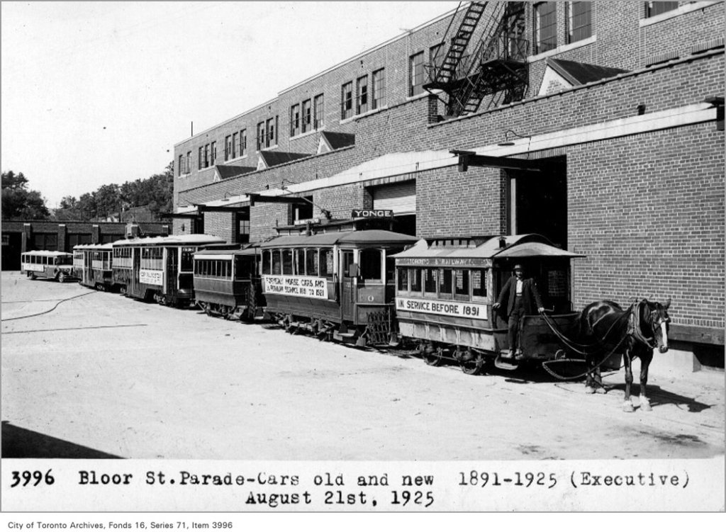 Back in August 1925, the TTC mounted a parade of historic and brand new vehicles to mark its reconstruction of the former Toronto Railway Company.