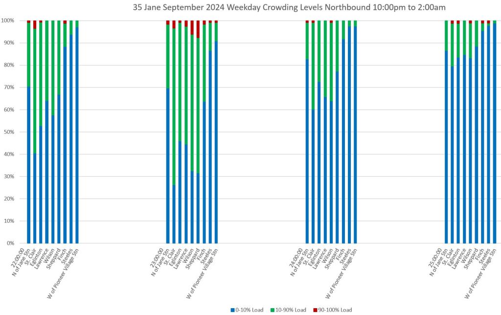 Updated Oct. 29 at 2:35pm: The service chart showing crowding levels has been revised with adjusted colouring, and to give emphasis to lines so that they stand out better. See the end of the article for a sample.