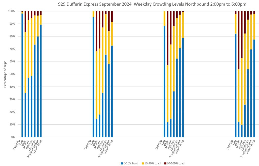 - Severe traffic congestion northbound near Yorkdale in the afternoon affects both the local and express buses.