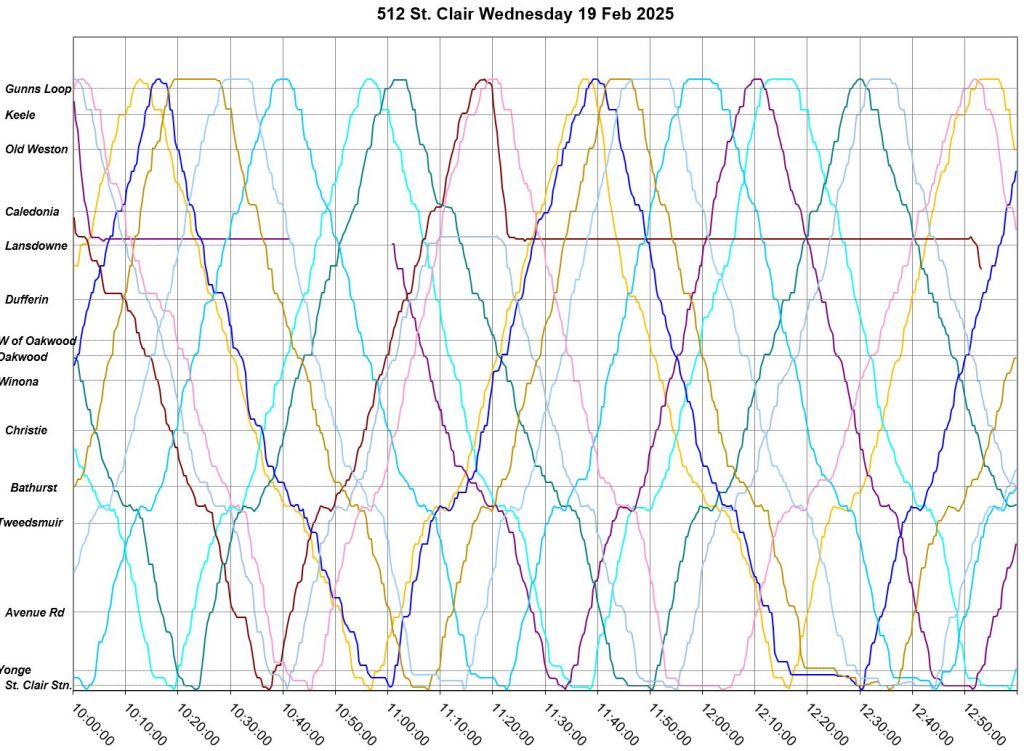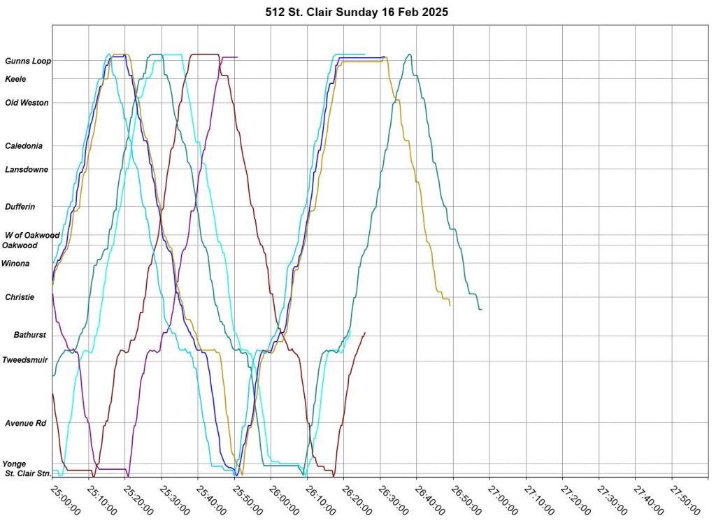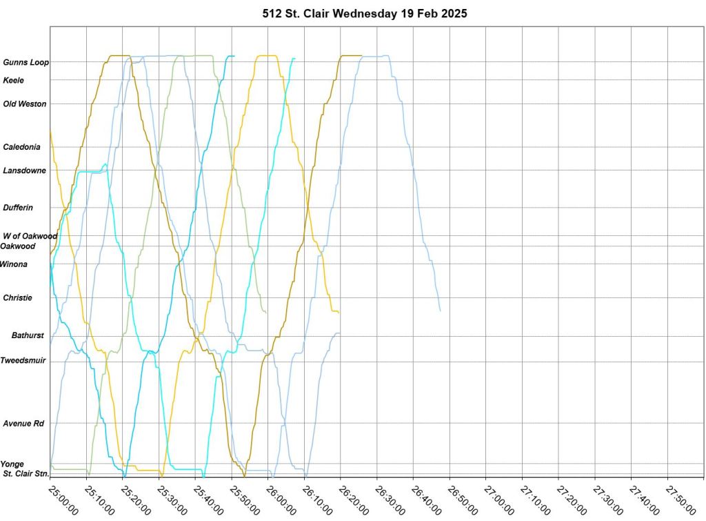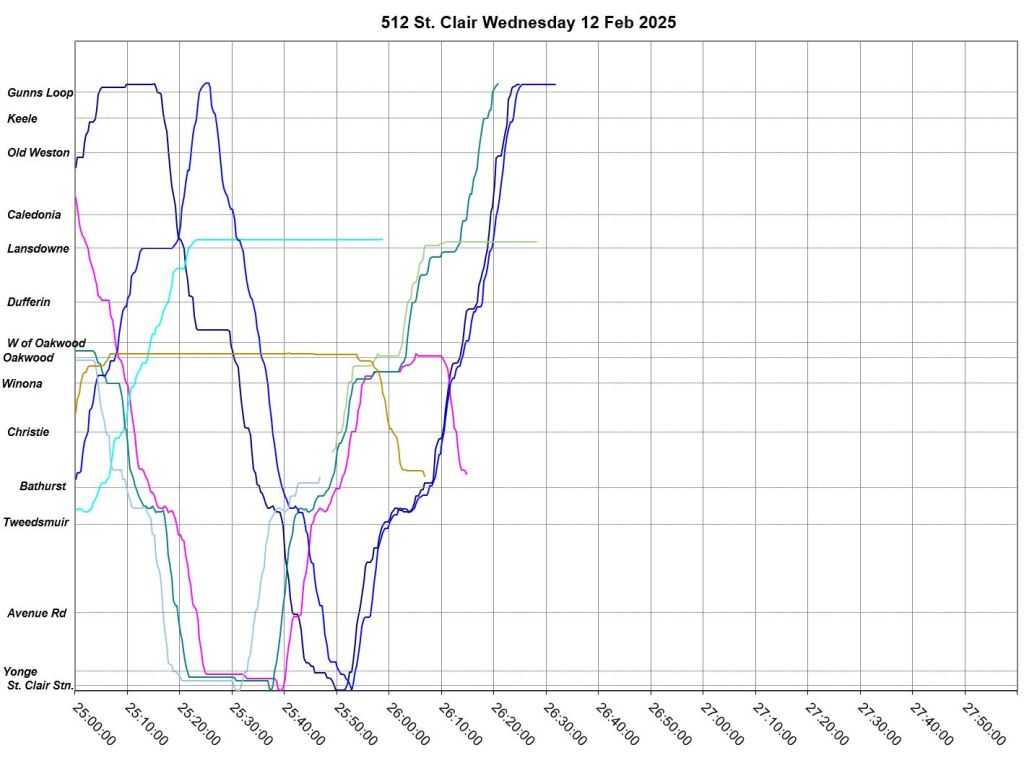 This article reviews the behaviour of service on 512 St. Clair during the first two months of 2025. This period was marked by an intense snow storm in mid-February that left many transit routes in disarray thanks to poor snow clearing.