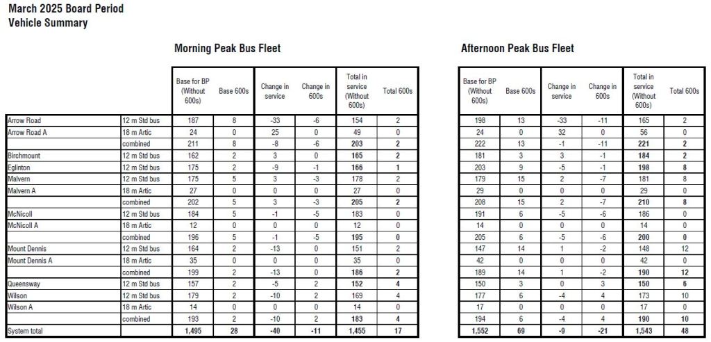 Updated March 28, 2025 at 11:15pm: Erroneous entries in the first/last trip table that were copied from the TTC’s service change memo have been updated with information from the electronic version of the schedules (GTFS) on the City’s Open Data site.