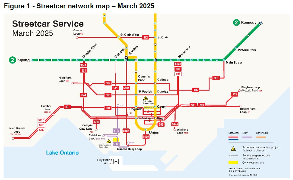 The south end of the 511 Bathurst and the west end of the 509 Harbourfront routes continue to be operating with shuttle buses, effective until Saturday, June 21, 2025.