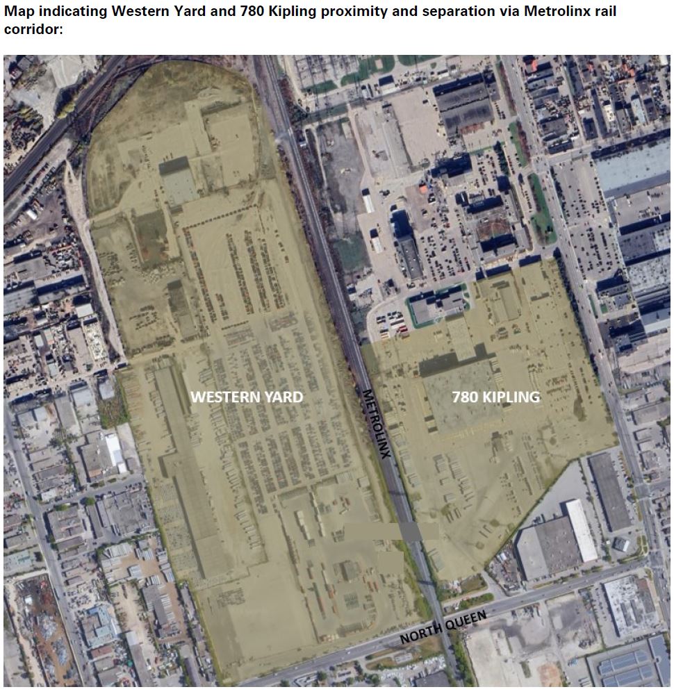 The map below shows the two sites. The Milton corridor is at the upper left, and Kipling Station is out of frame at the upper right.