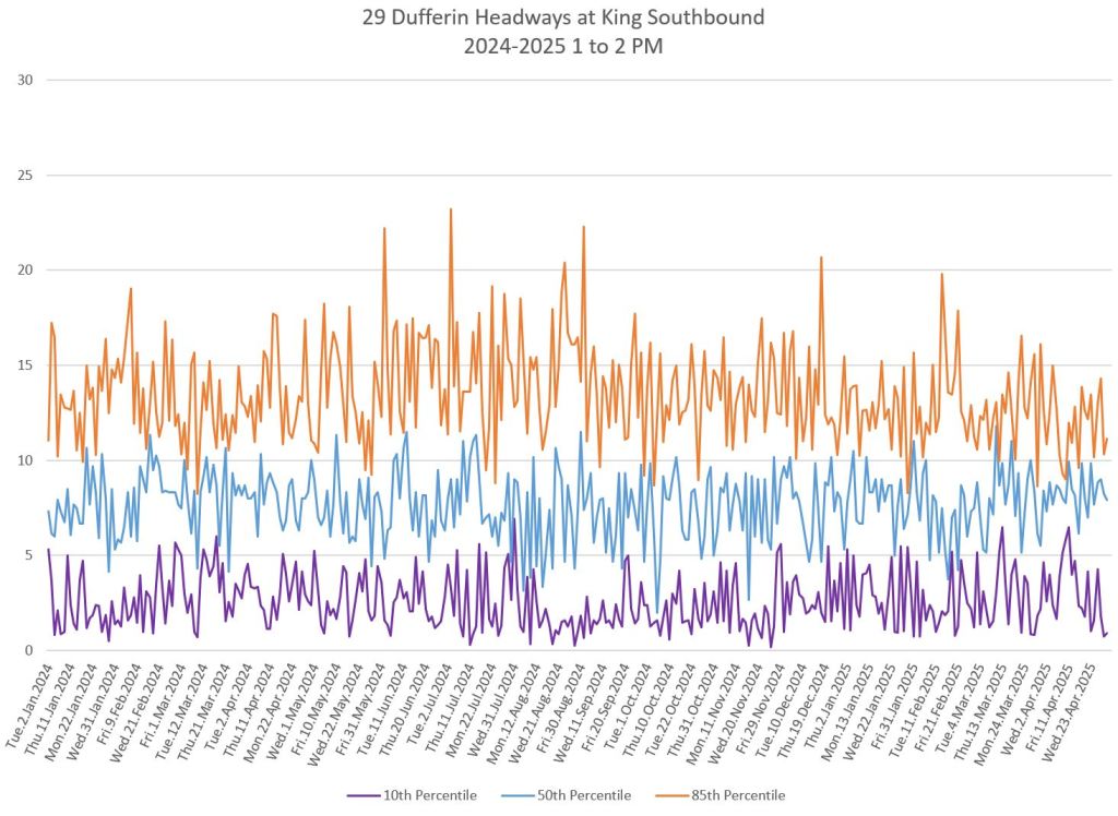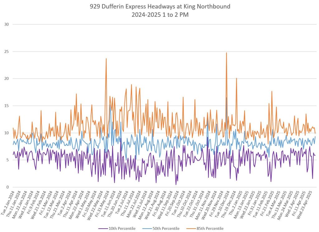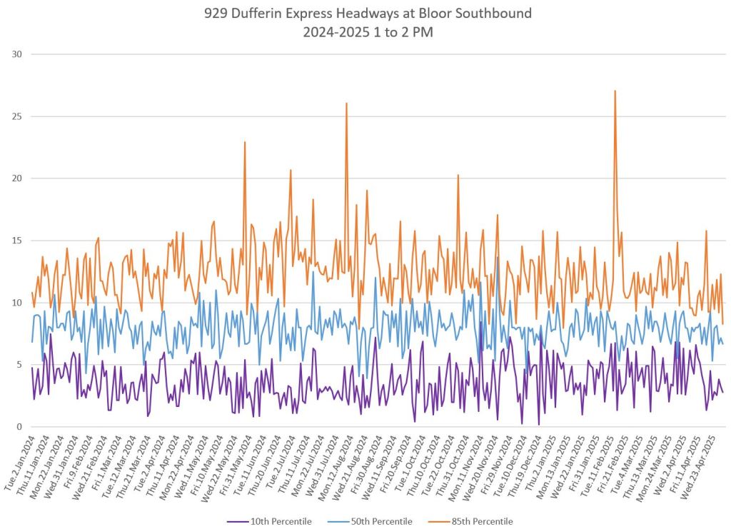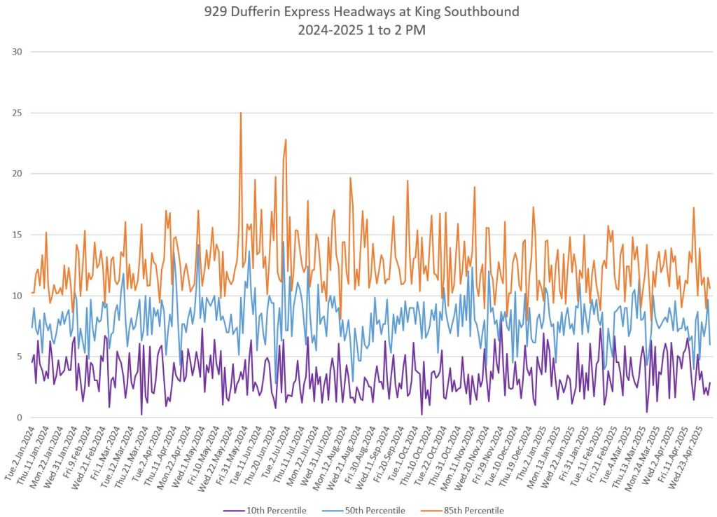 - Service Analysis of 29/929 Dufferin Part I: Headways in April 2025