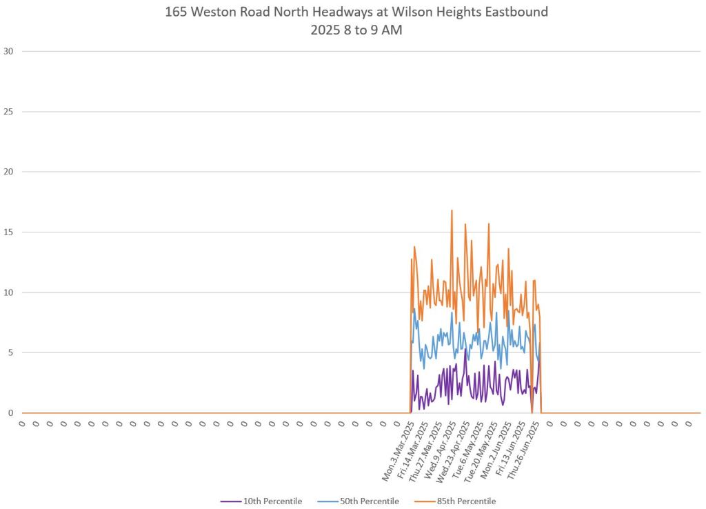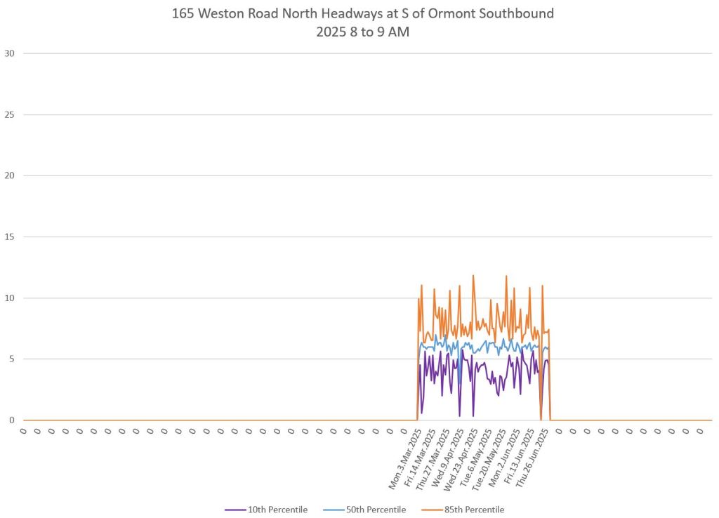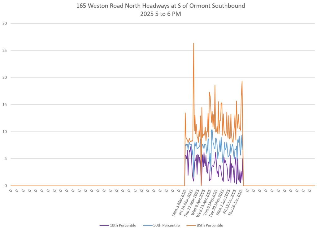 I did not begin to track the 165 Weston Road North until March 2025. Recent data are shown here.