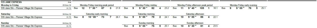Crowding conditions are not addressed by these stats, and this is difficult to extract from TTC tracking data due to the coarse-grained nature of reported loads. TTC does not publish numeric vehicle loads, only broad light-medium-heavy loading indications. Although they report all-day ridership on each route, this is not broken down by time of day, location and direction, at least not for external consumption. TTC has crowding standards, but we do not know how well they meet them.