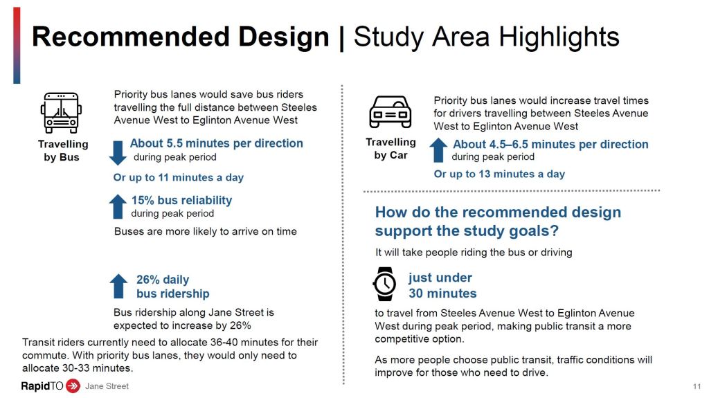 A basic message of both articles is that the TTC trumpets a return to former service levels, but the metric they use, vehicle hours, misrepresents the level of service provided. Buses and streetcars travel more slowly now than they did in 2019, and they have more generous recovery times at terminals. These combine to make a vehicle hour less productive in the amount of service it provides than in past years, and so 100% of former hours does not produce the same service. That is separate from other factors such as a decline in reliability, bunching and gaps which compound the less frequent scheduled service.