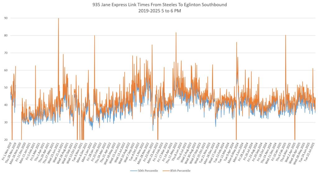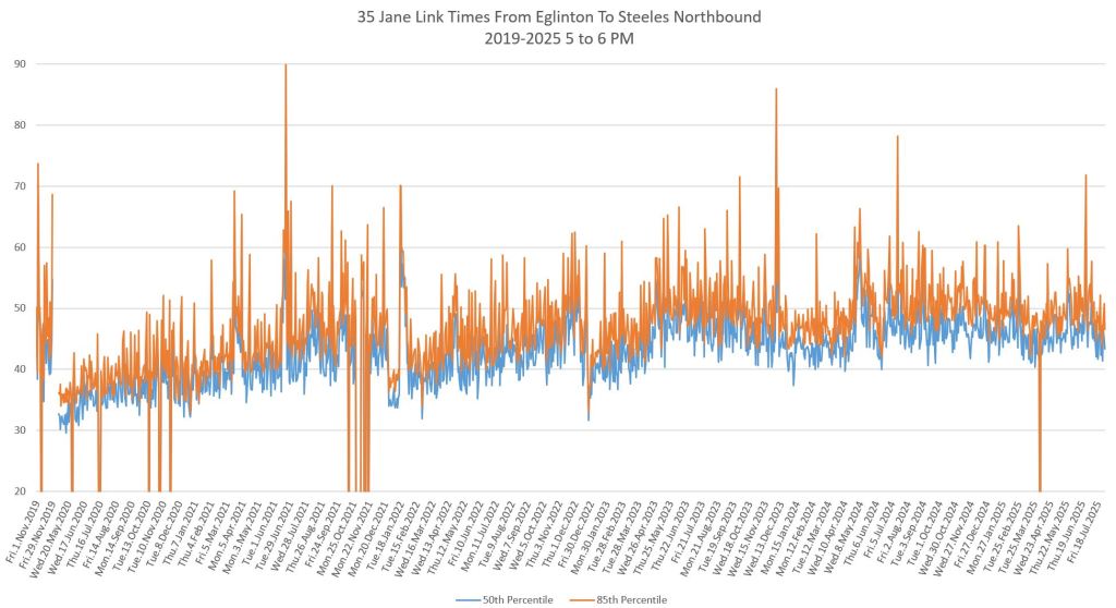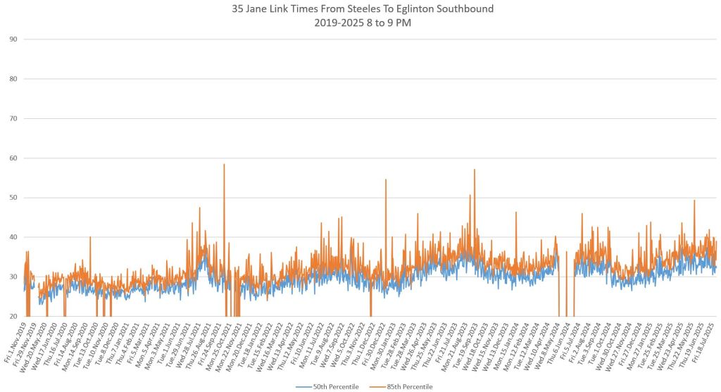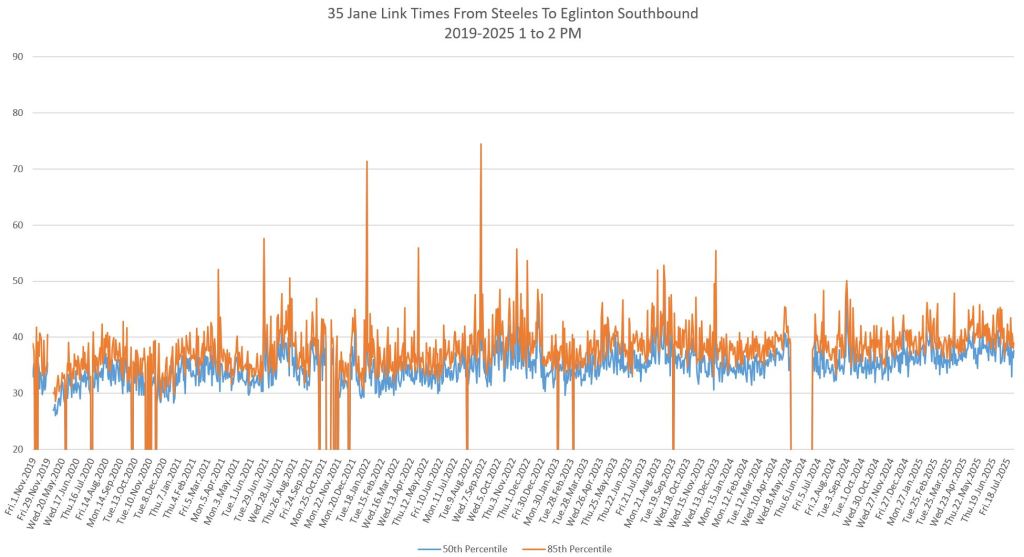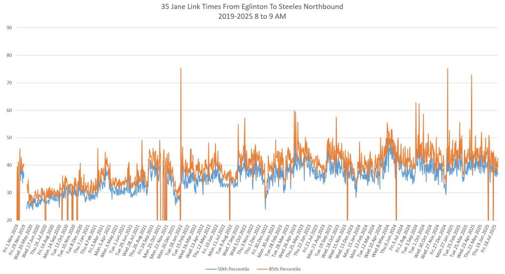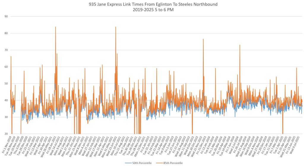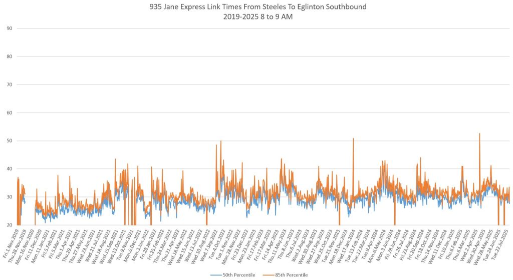The remainder of this article updates previously published data about travel times on Jane starting just before the pandemic in November 2019 up to July 2025.