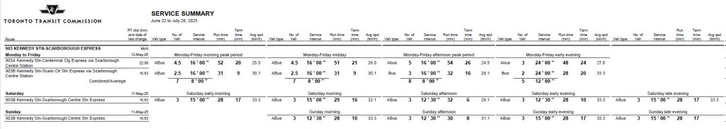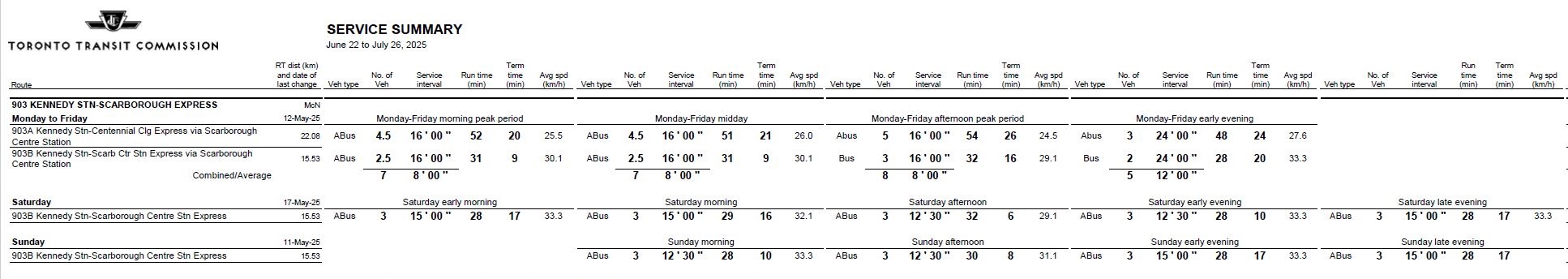 The 903 express is nominally a replacement for Line 3 SRT between Kennedy Station and Scarborough Centre. It also includes a service to Centennial College that was formerly provided by the Progress bus.