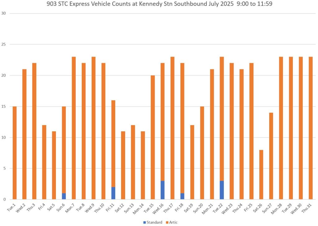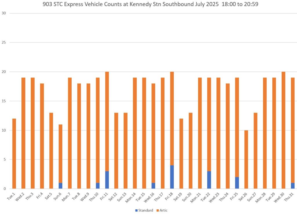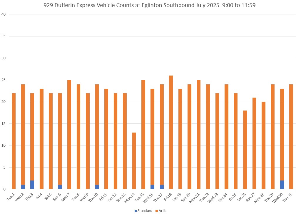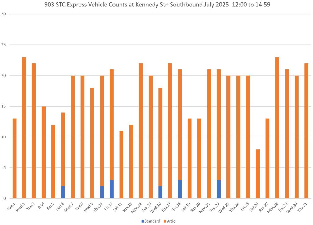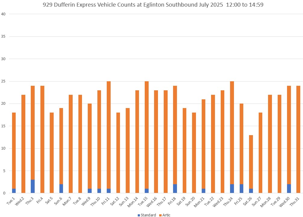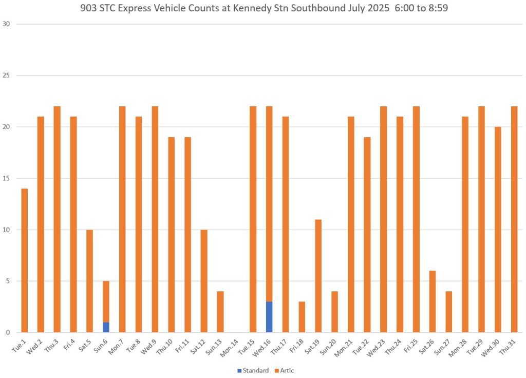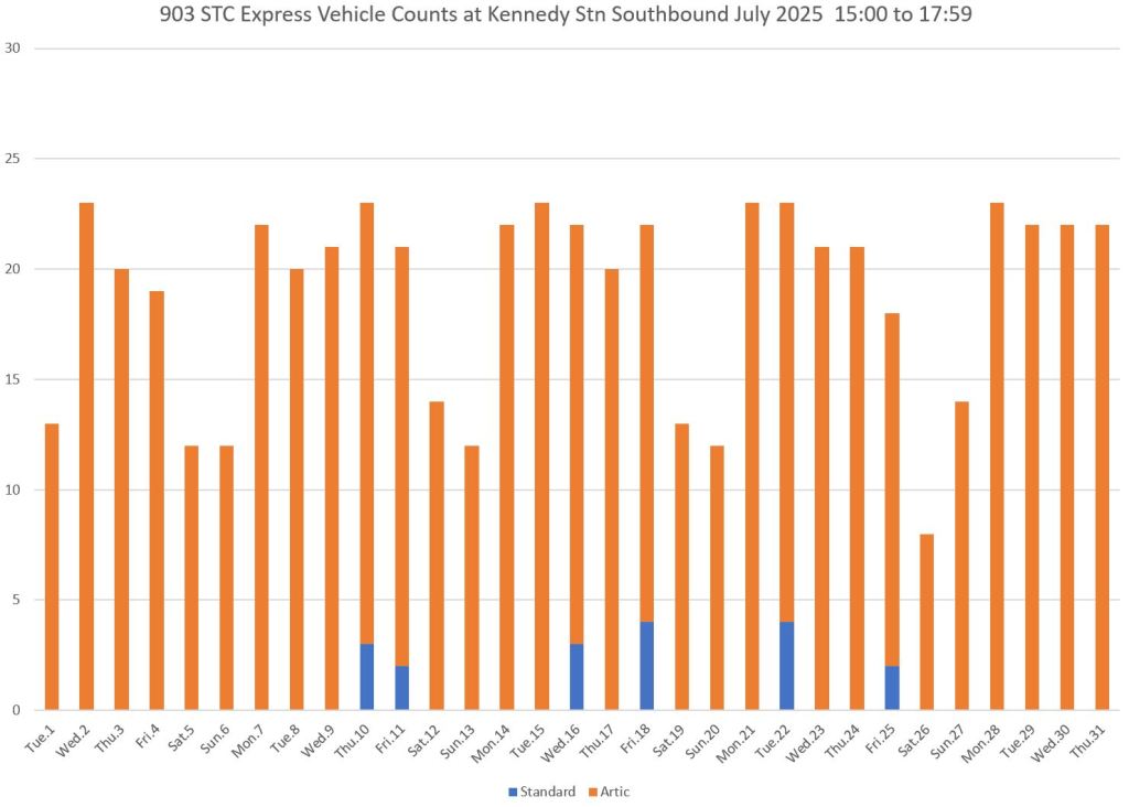 Thank you Steve for keeping track of this. This aligns with my observations. 904/985 always seems to be half and half or mostly standard buses. Often they’ll dispatch a standard for the whole day. If the TTC has issues with the Nova Artics, creating a shortage, they should consider reverting a route or two back to standards to fix the availability issue. I think 905 on weekends and 129B could go back. 941? Maybe this will help?