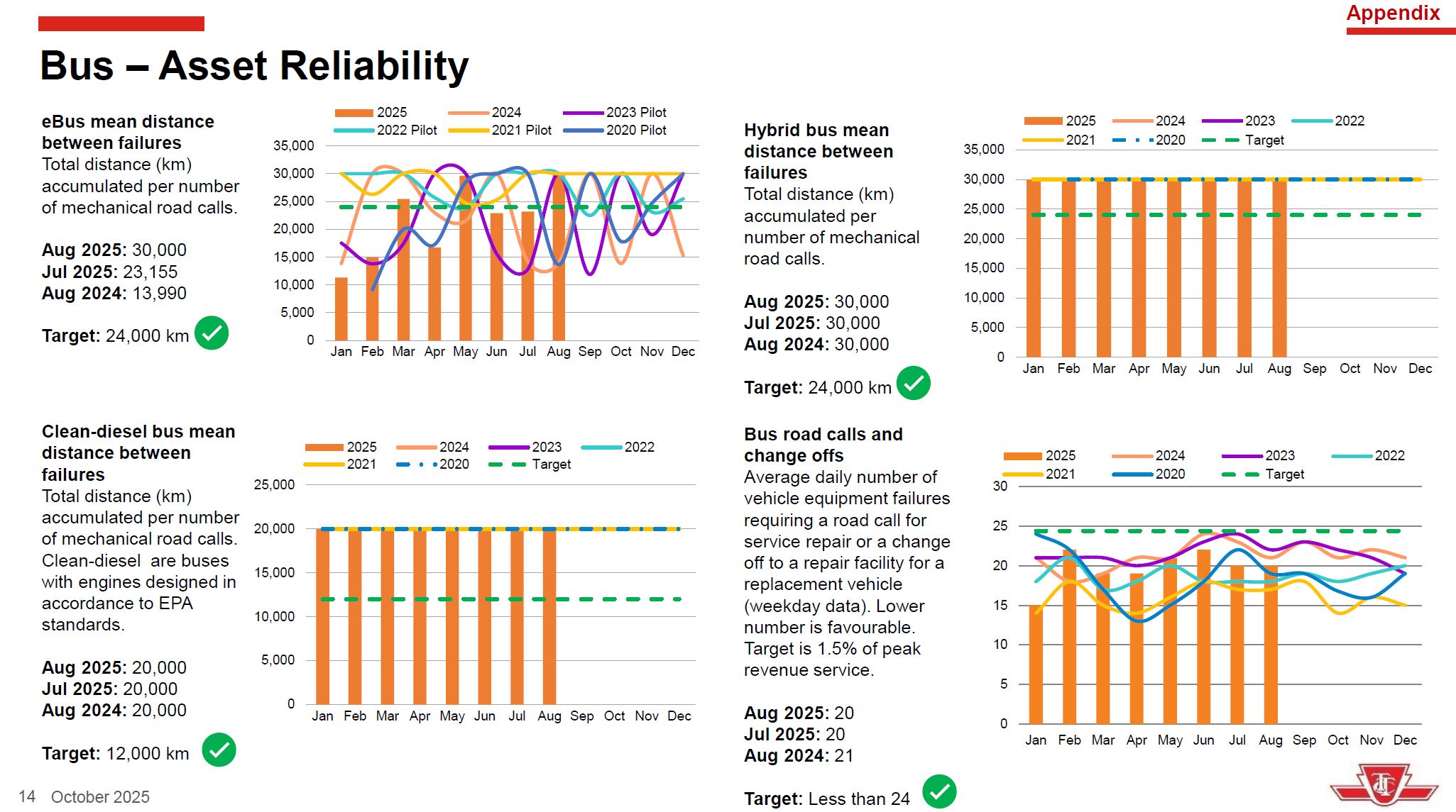 While, in theory, this does not directly affect service or maintenance levels, there is simply no way that the TTC can find $141-million without at least constraining the union side as well. In turn, this has implications for service growth in 2026 especially considering the ongoing loss of productive service hours to traffic congestion and changes in bus dispatching for the shorter range of eBuses. There is also the question of adequate staffing in various maintenance departments.