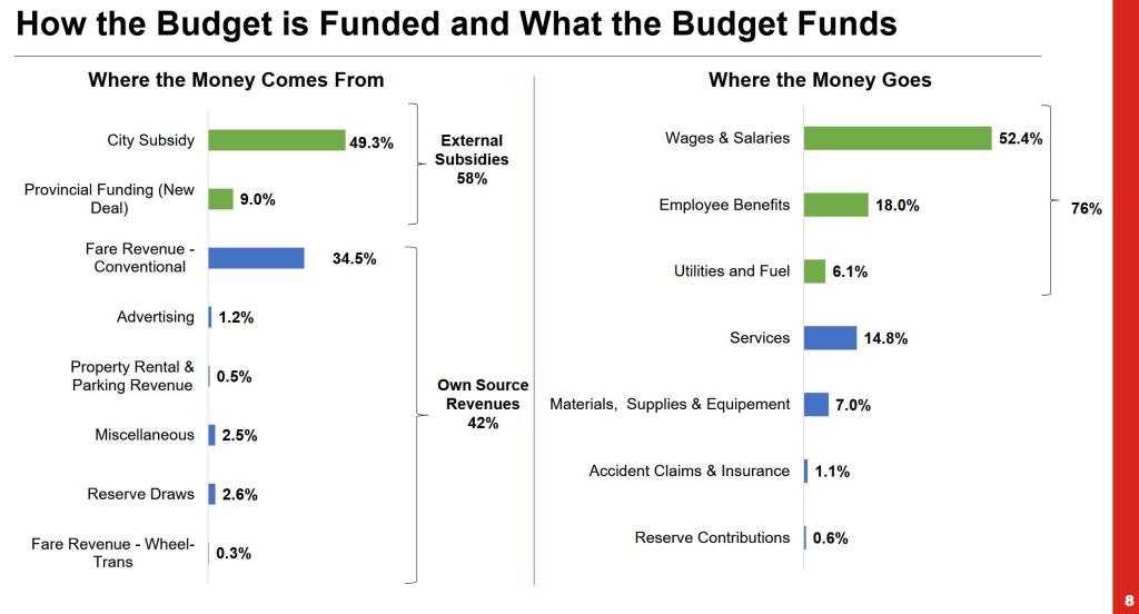 - Departure and arrival times: These are shown for selected major stops. Some trips originate eastbound from the maintenance yard, and so they first show up at Jane-Finch.