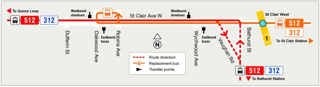 - Dec. 8 (6pm to 11pm): 512 St. Clair cars replaced by buses west of St. Clair West Station.
