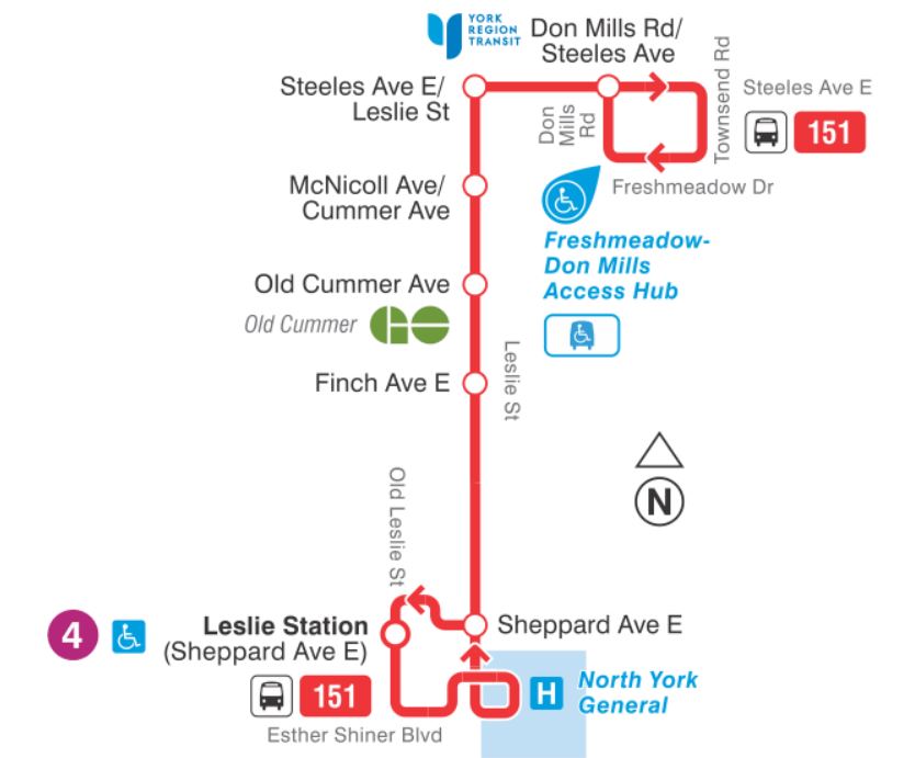 - 151 Leslie North: The 51 route will be replaced north of Sheppard by new route 151 running from Leslie Station to Steeles. Service will operate every 20-25 minutes, 30 in late evenings.